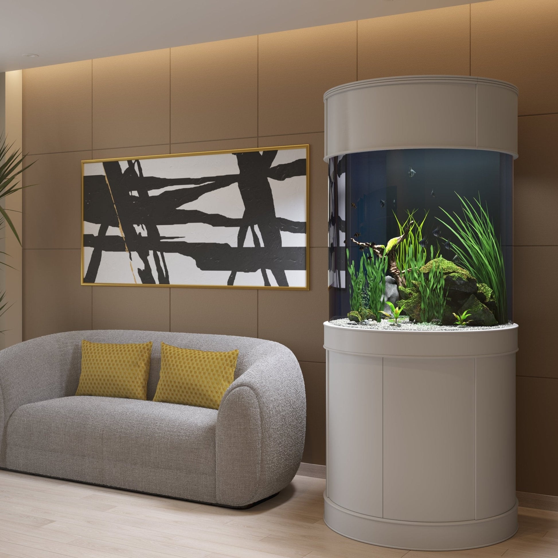 115 Gallon 3/4 Cylinder Glass Reef-Ready Aquarium Set in Tulum White