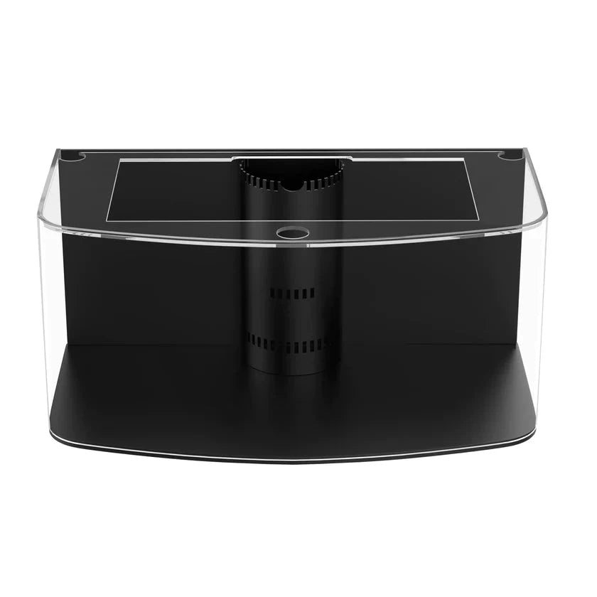 Aqua Vim glass tanks come with built-in three-level intake overflow boxes (larger tank sizes have 2 overflows) and predrilled 1.5 drain and 1 return holes for plumbing. Tanks are top-braced with glass rims for maximum structural integrity. The drilled feeder hole in the brace of the tank allows for accessibility and convenient feeding. For ease of setup, dual openings in the back corners of the brace allow for customization and wiring of internal tank accessories such as air pumps, heaters, and wave makers. Aquariums come with a black vinyl background attached.