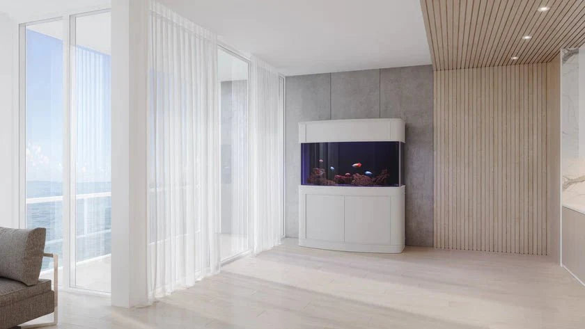 Every tank is paired with wood cabinetry handcrafted by our master carpenters. The front-open 12 canopy features a wood prop that allows for hands free maintenance and lighting hooks / cooling fan slots for even the most dedicated of lighting enthusiasts. The 34 stand is fastened with soft close steel hinges and easy-click magnetic door closures for effortless access. The center beam in the stand is removable, providing ample space for moving around equipment during setup.
