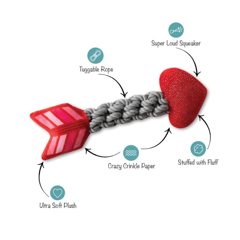 Aiming For You Arrow Heart Rope Plush Dog Toy