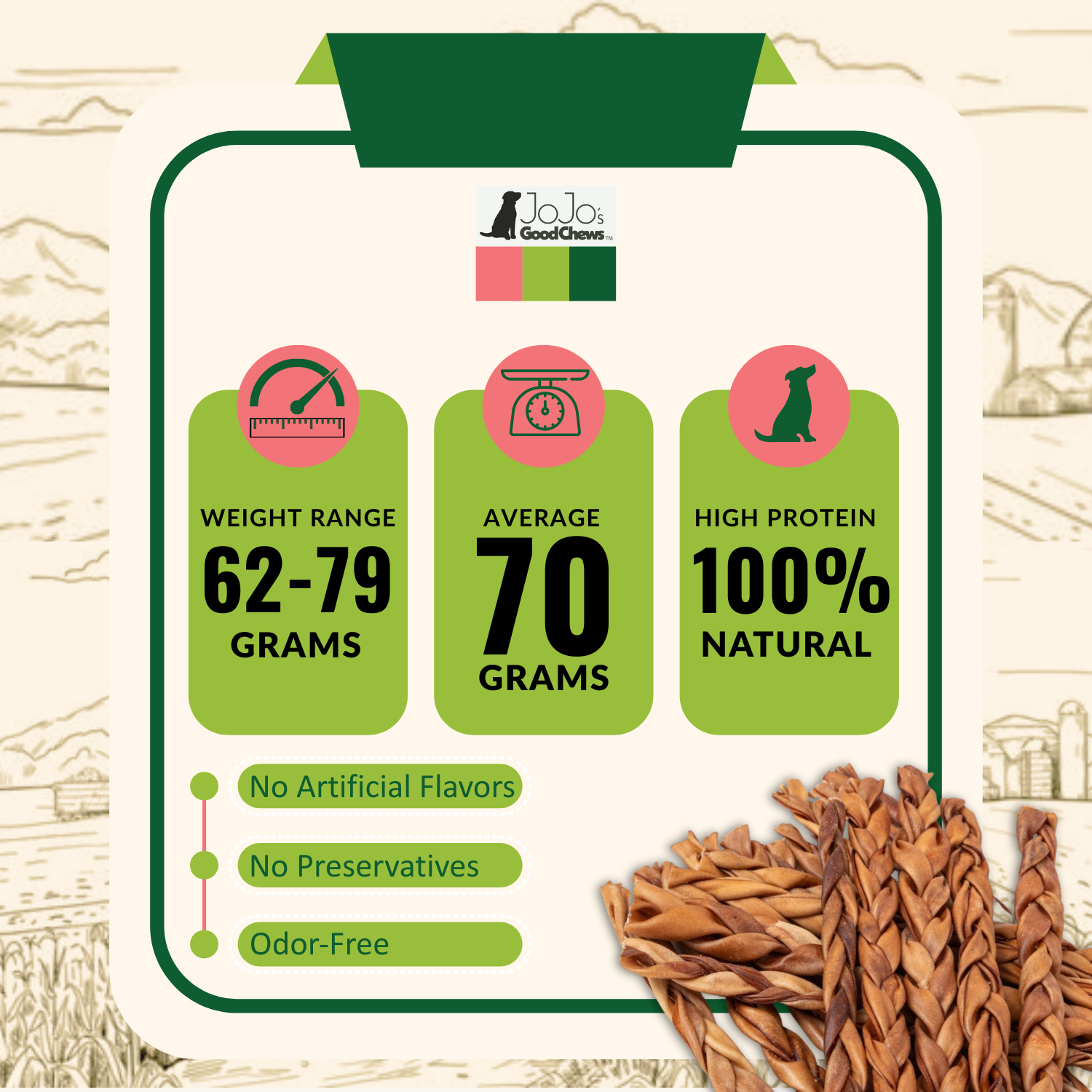 Sourced from free-range, grass-fed cows, these braided treats are slow-roasted to perfection to lock in natural beef flavor. The firm, braided texture is designed for tough chewers, helping to scrape away plaque and tartar while keeping your dog entertained for hours. Plus, they are completely free from grains, gluten, wheat, corn, and soy, making them an excellent choice for pets with food sensitivities.