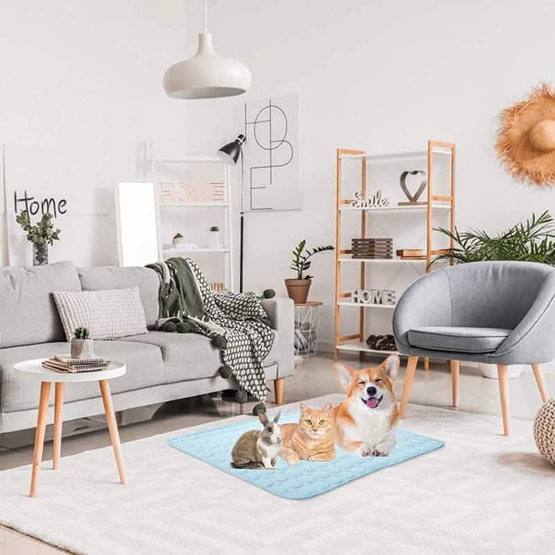 Keep your furry friend cool and comfortable all summer long with our Automatic Cooling Dog Mat Washable Pet Sleeping Blanket Mat. Crafted from high-quality, self-cooling fabric, this innovative pet mat offers a refreshing and soothing experience without the need for water, electricity, or refrigeration. Simply place it on any surface—be it a bed, sofa, or outdoor area—and enjoy an instant cooling effect that reduces your pet's body temperature by 3-4 degrees in seconds.