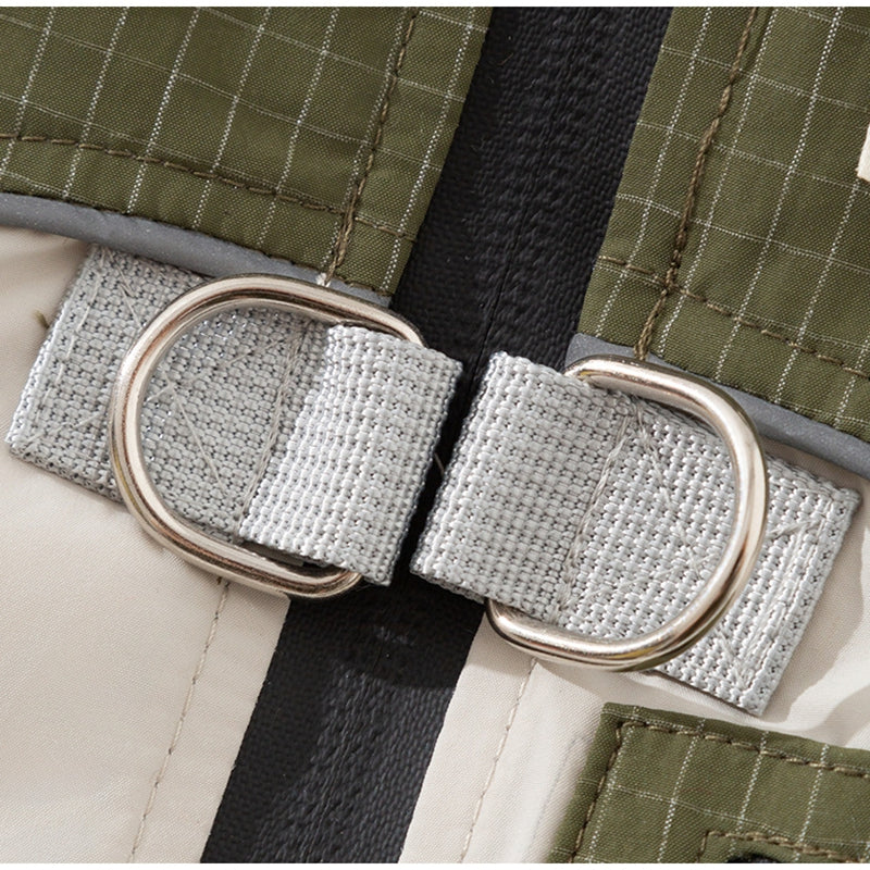 Equip your pet for outdoor exploration with this Outdoor Adventure Pet Vest! Featuring a khaki plaid and beige color-block design, it includes a built-in leash ring, a secure zipper pocket for essentials, aThe durable, padded fabric ensures warmth and protection, while the functional details like adjustable straps and a smooth zipper make it perfect for hikes, walks, or urban outings. Ideal for pet parents who prioritize both style and practicality, this vest lets your furry companion embrace adventure in comfort and fashion. A must-have for the active, design-conscious pet!
