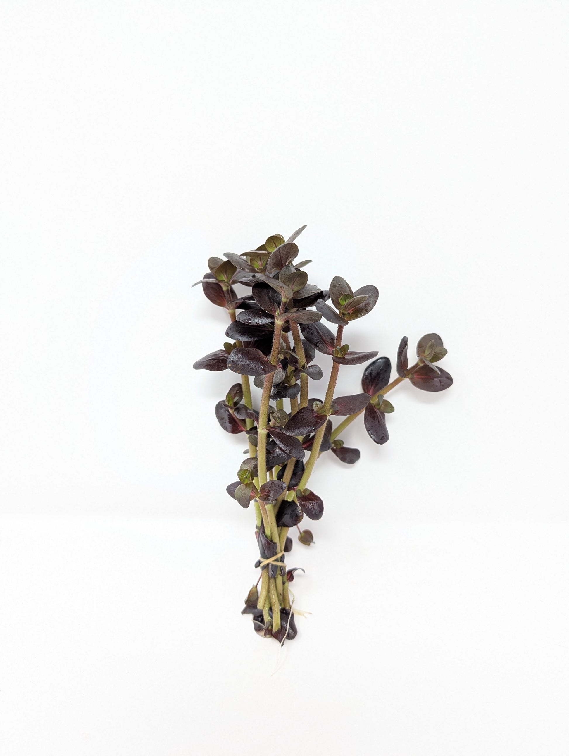 Bacopa salzmannii 'Purple' is a stunning stem plant that displays rich purple and burgundy tones when grown under high light and proper nutrients. Its vibrant color and upright growth make it a standout choice for midground to background placement in aquascapes.