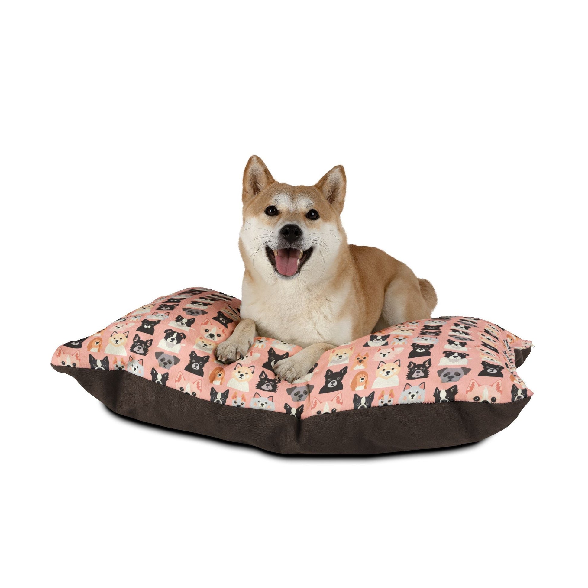 Want to keep that fur monster off of your furniture? Give them a beautiful place of their own! This feather soft fleece exterior is printed on one side, and has a dark brown zippered back and a pillow insert.