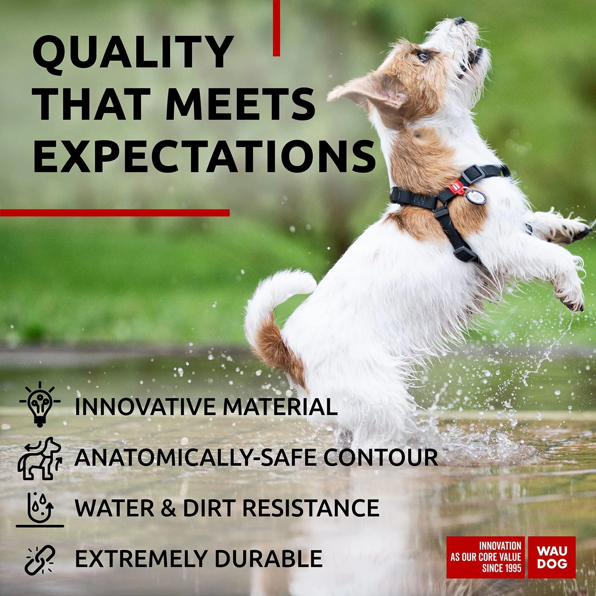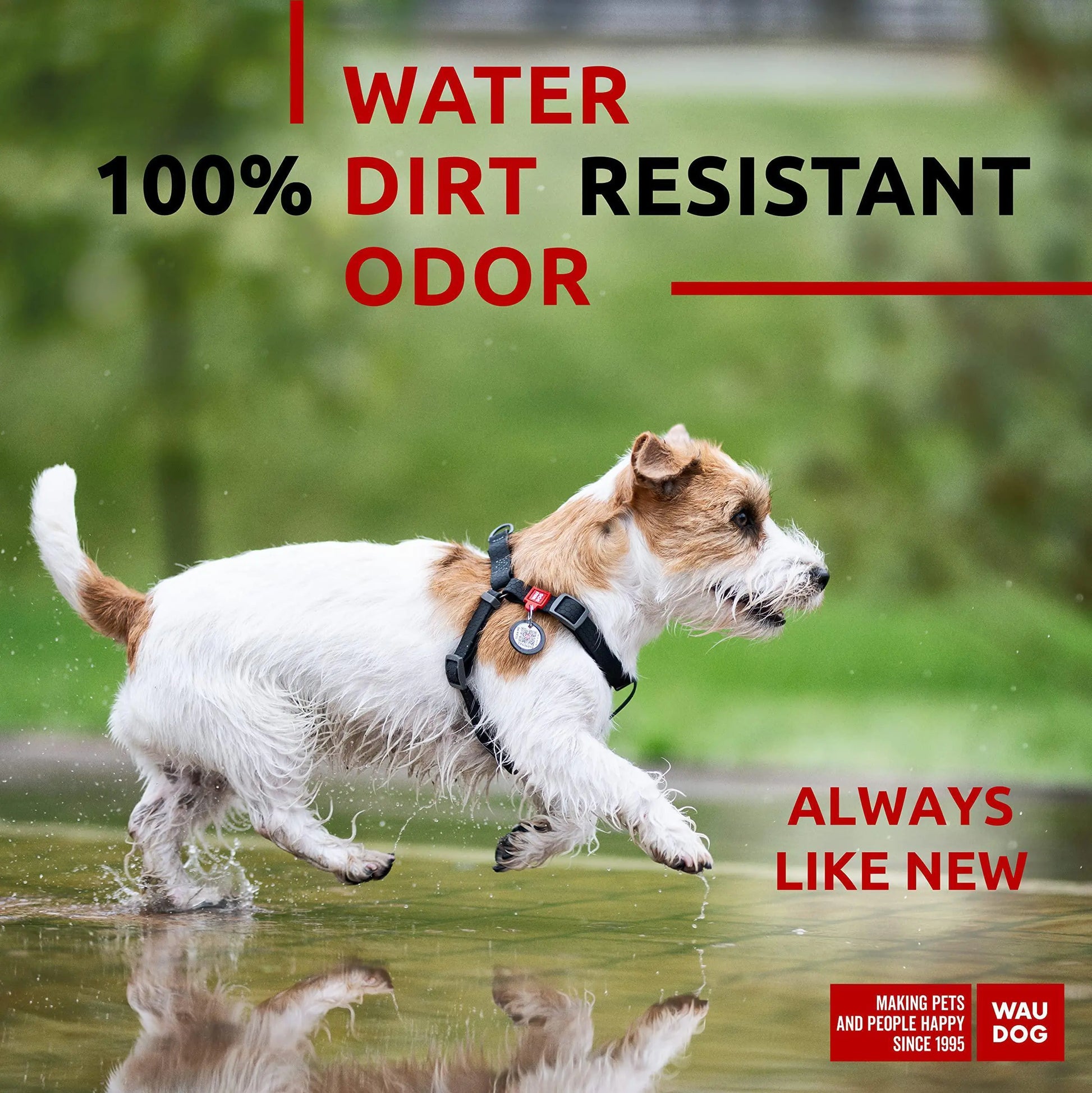 Innovative Material - The Waterproof dog harness is made of the innovative COLLARTEX material developed by the COLLAR company, which repels water and dirt. This material not easily soiled, can be simply washed under running water, and does not absorb dog odors.