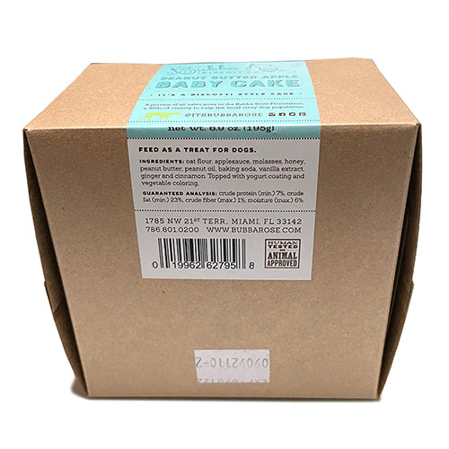 Our best selling shelf stable baby cakes! That's right, no refrigeration or freezing necessary, these cakes are shelf stable for 1 year like the rest of our treat line. They are densely chewy in texture (think biscotti/day old brownie combo). They are a peanut butter apple cake and can be cut for smaller dogs. Great for one medium-large dog. They are best cut with a serrated knife. These can not be personalized.