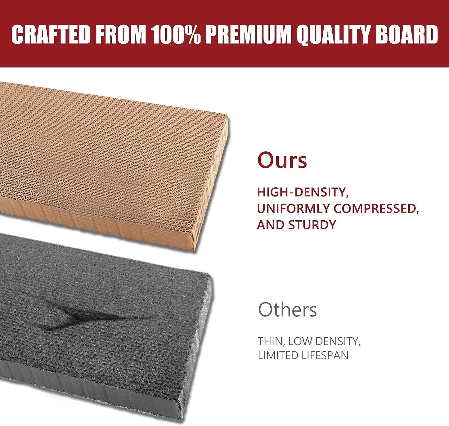 - [CORRUGATED SCRATCHER & CATNIP INCLUDED]: This cardboard cat scratcher house' corrugated texture helps groom their nails as they dig in and keeps your scratching board for the cat fresh at all times. Your furry friend meets this fun surface to scratch, which helps groom their claws. Sprinkle with catnip to attract and encourage your cat to use this scratcher. The catnip for cats helps you entice your kitty to have good scratching habits and keeps your cat interested and entertained for hours.