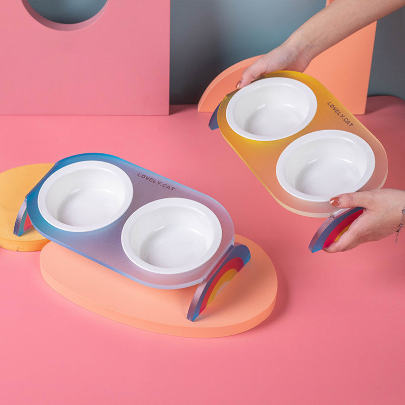 Color: ceramic single Bowl rainbow transparent single Bowl rack, ceramic single Bowl Rainbow Pink single Bowl rack, ceramic single Bowl rainbow yellow single Bowl rack, ceramic single Bowl rainbow blue single Bowl rack, ceramic double bowl rainbow transparent double bowl rack, ceramic double bowl rainbow pink double bowl rack, ceramic double bowl rainbow yellow double bowl rack, ceramic double bowl rainbow blue double bowl rack