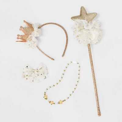 Dress up your little one in a dreamy, fairy-like costume using the Toddler Crown & Wand Dress Up Set from Cat & Jack?. This delightful 4-piece dress-up set for toddlers includes a crown and a matching wand, perfect for imaginative play and special occasions. Sized just right for toddlers, it brings an adorable vibe to their look in an instant. Cat & Jack?: Designed for all children so you can trust it's made for yours.