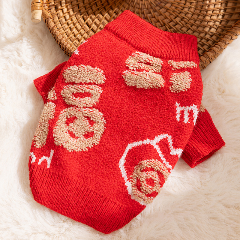 Bring good fortune to your pet this Lunar New Year with this "Fu" Luck Pet Sweater! Made in vibrant red with textured embroidery of the Chinese "Fu" symbol and traditional motifs, it's perfect for festive celebrations. The soft knitted fabric ensures warmth and comfort, while the bold design adds a touch of cultural charm. Ideal for Lunar New Year gatherings or casual holiday wear, this sweater allows your furry companion to embrace the holiday spirit in style. A must-have for pet parents looking to add traditional luck and fashion to their pet’s wardrobe!