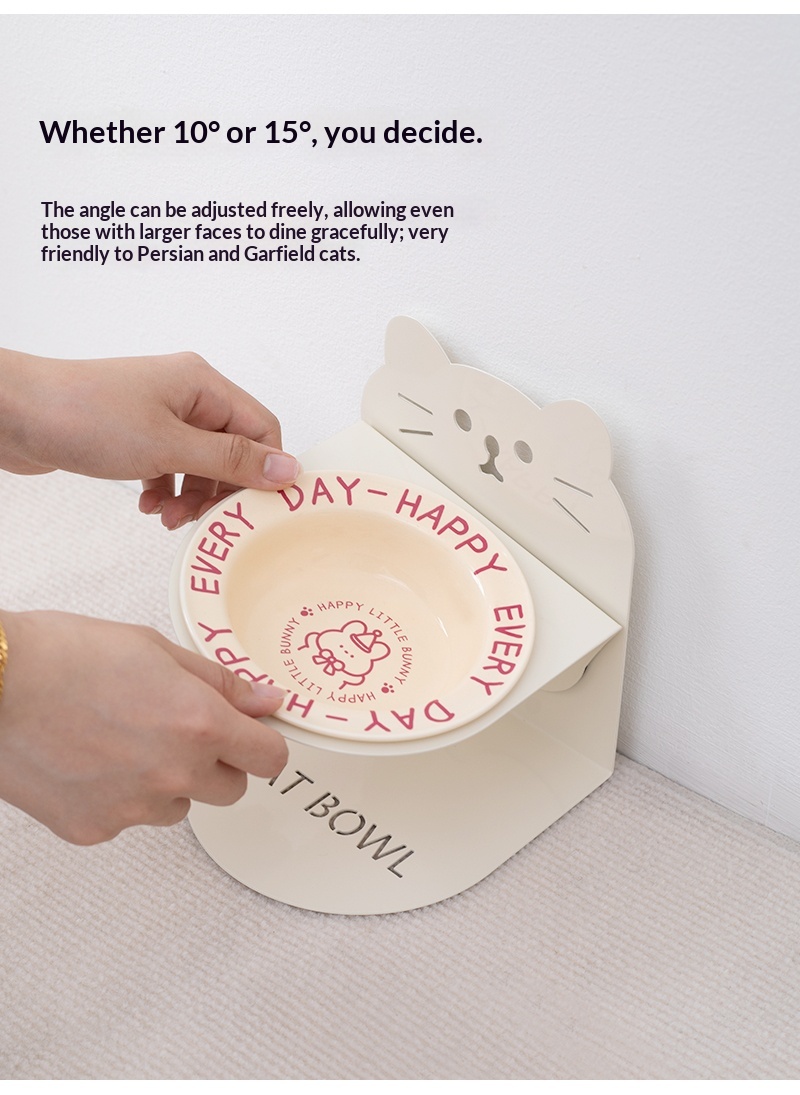 Chinese Style Ceramic Cat Bowl High Leg Double Bowl Oblique