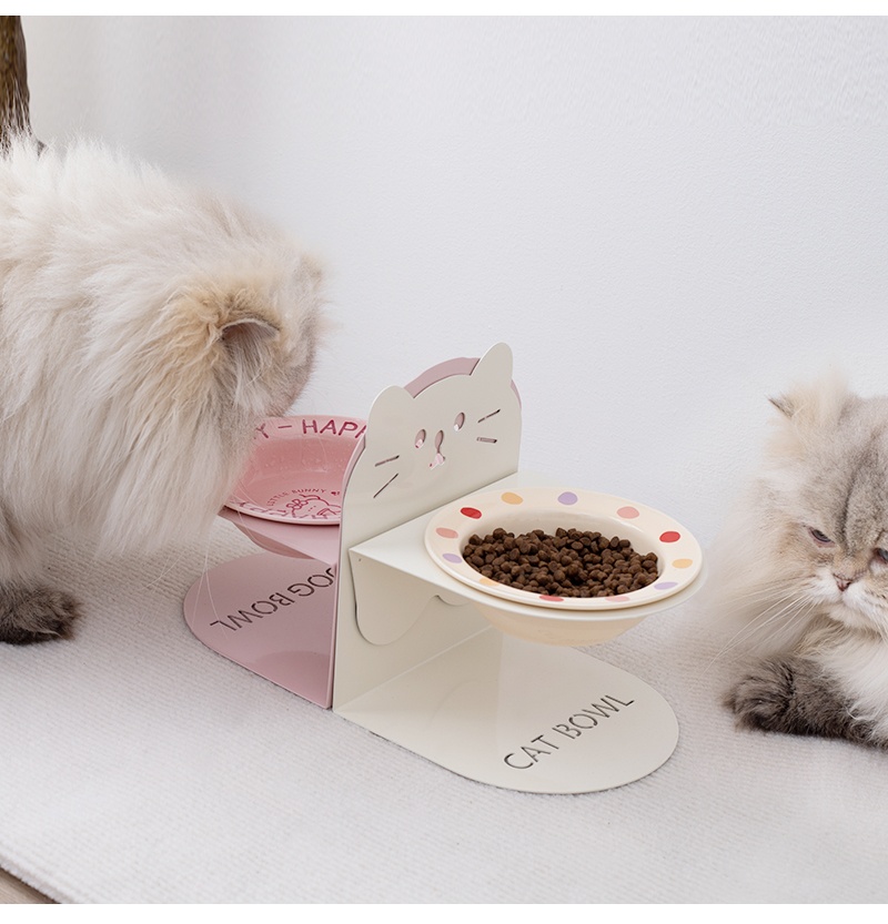 Ceramic Cat Bowl Cat Iron Frame High Leg Tableware Combinati