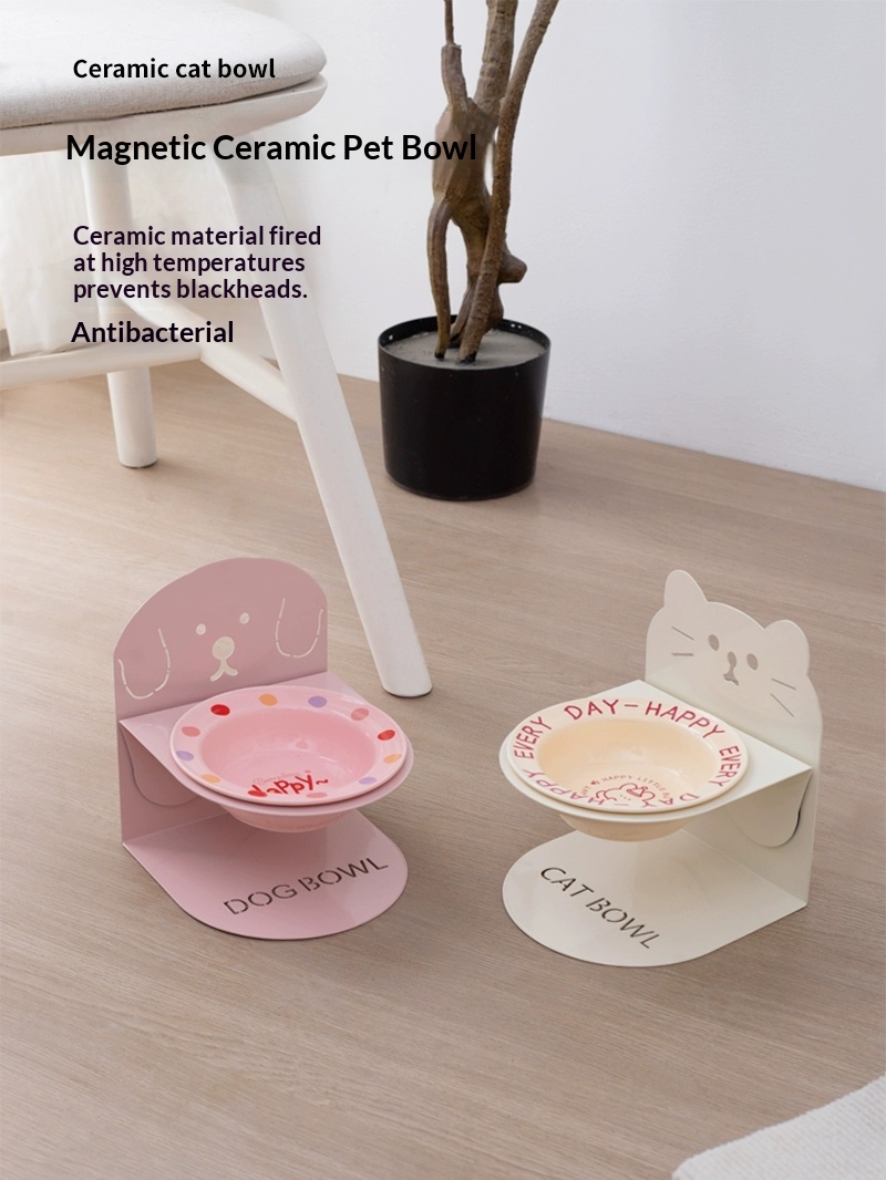 Ceramic Cat Food Cat Magnetic High-legged Cat Bowl Stand Cat