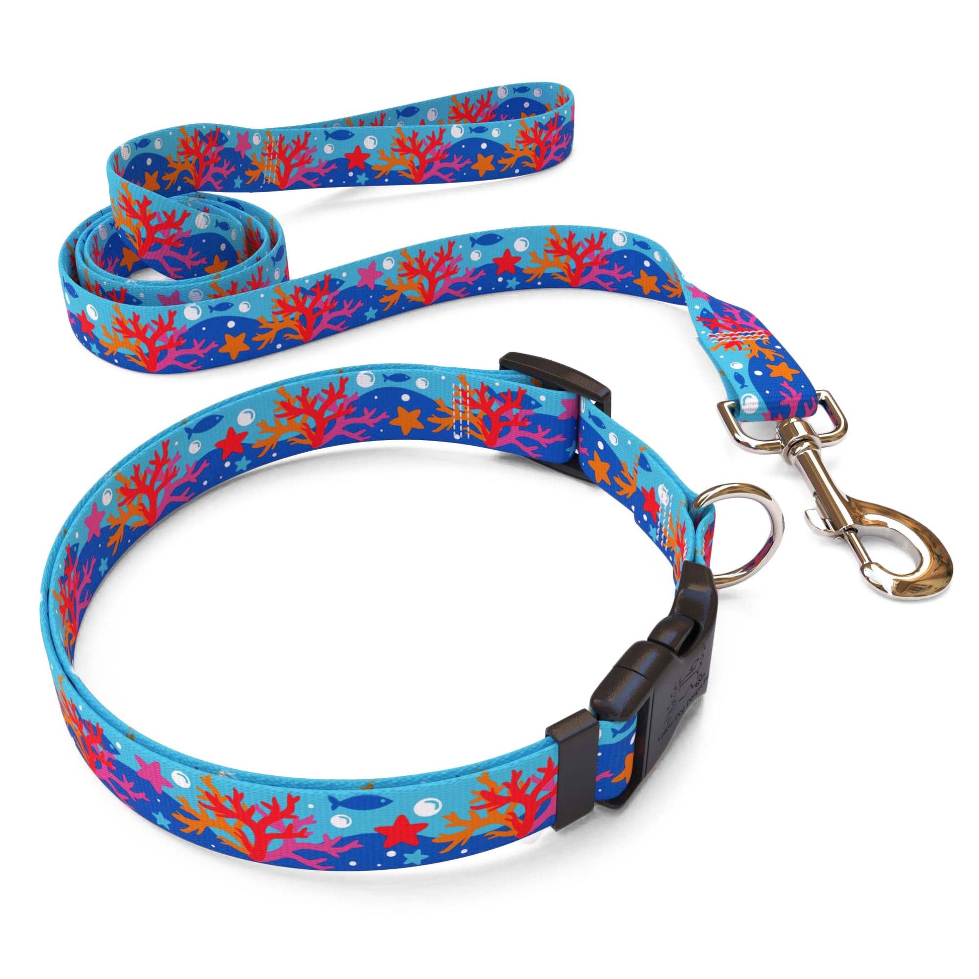 Take your pup to paradise with a Tropical Island collar by Yellow Dog. Sunsets, sea creatures, and sandy creatures help you and your dog be reminded of the beauty of being somewhere Tropical. Welcoming pineapples, colorful seascapes, and beautiful toucans will bring the tropics to your dog's backyard.