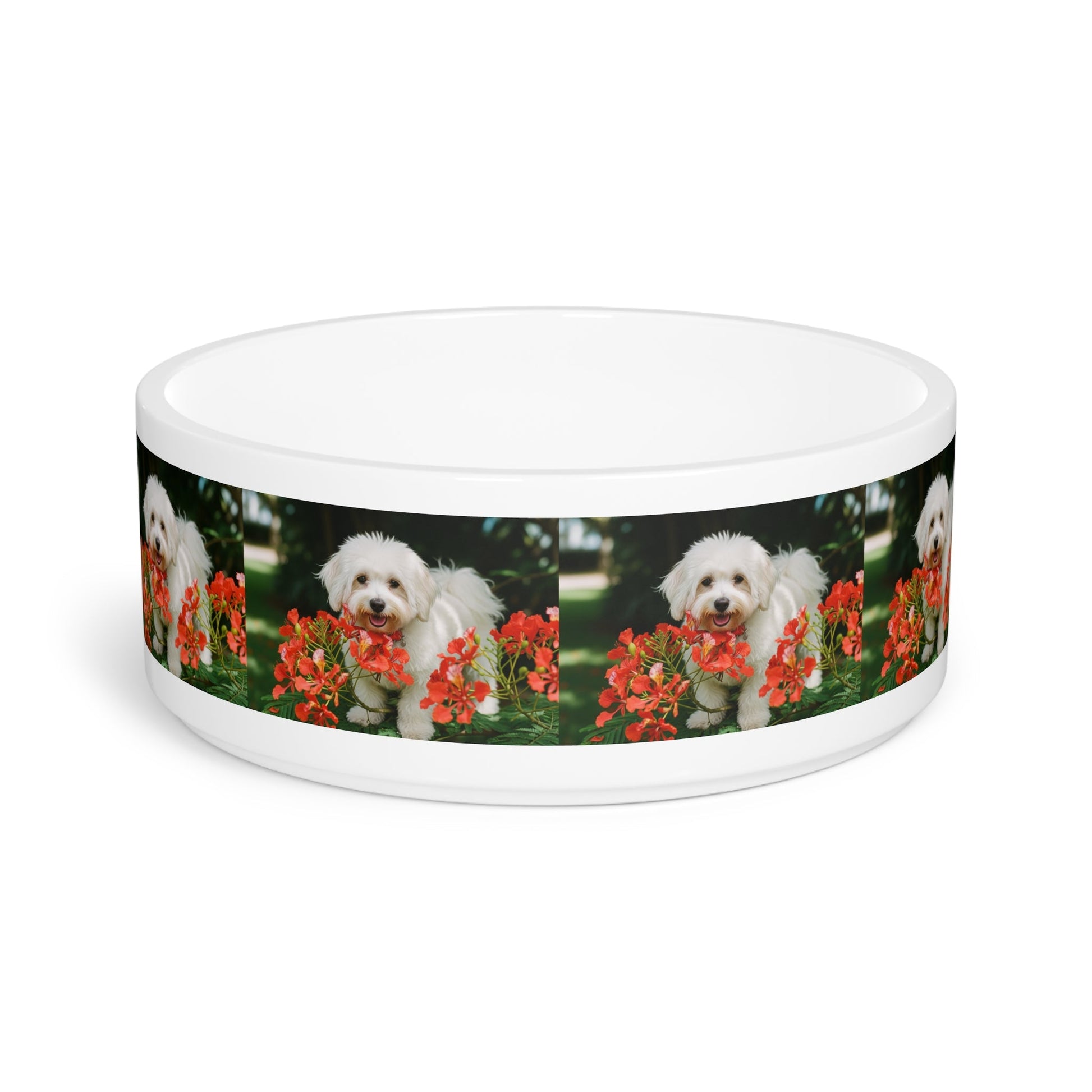 These custom pet bowls are a great way to add some personality to your pet accessories. These custom pet bowls measure 6" in diameter, 2.25" in height and 19" in circumference. All pet bowls are 100% dishwasher and microwave-safe for added convenience.