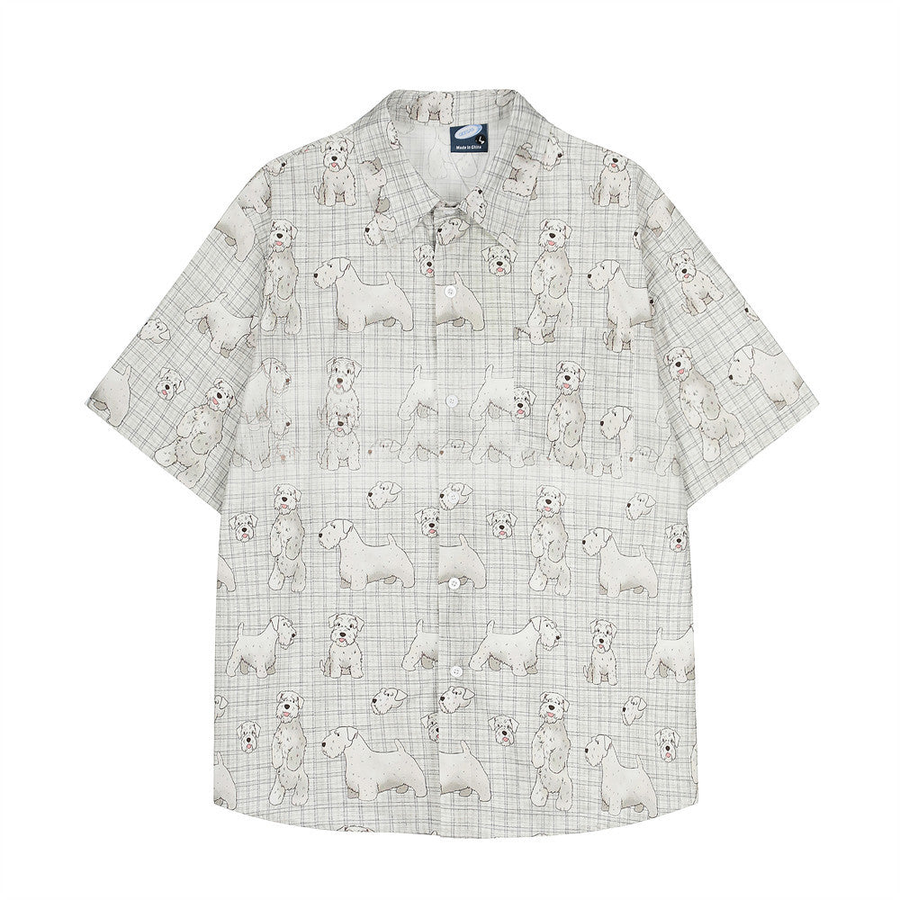 Digital Full Print Cartoon Dog Plaid Short Sleeve Shirt Loose Casual Turn-Down Collar Summer Shirt for Men
