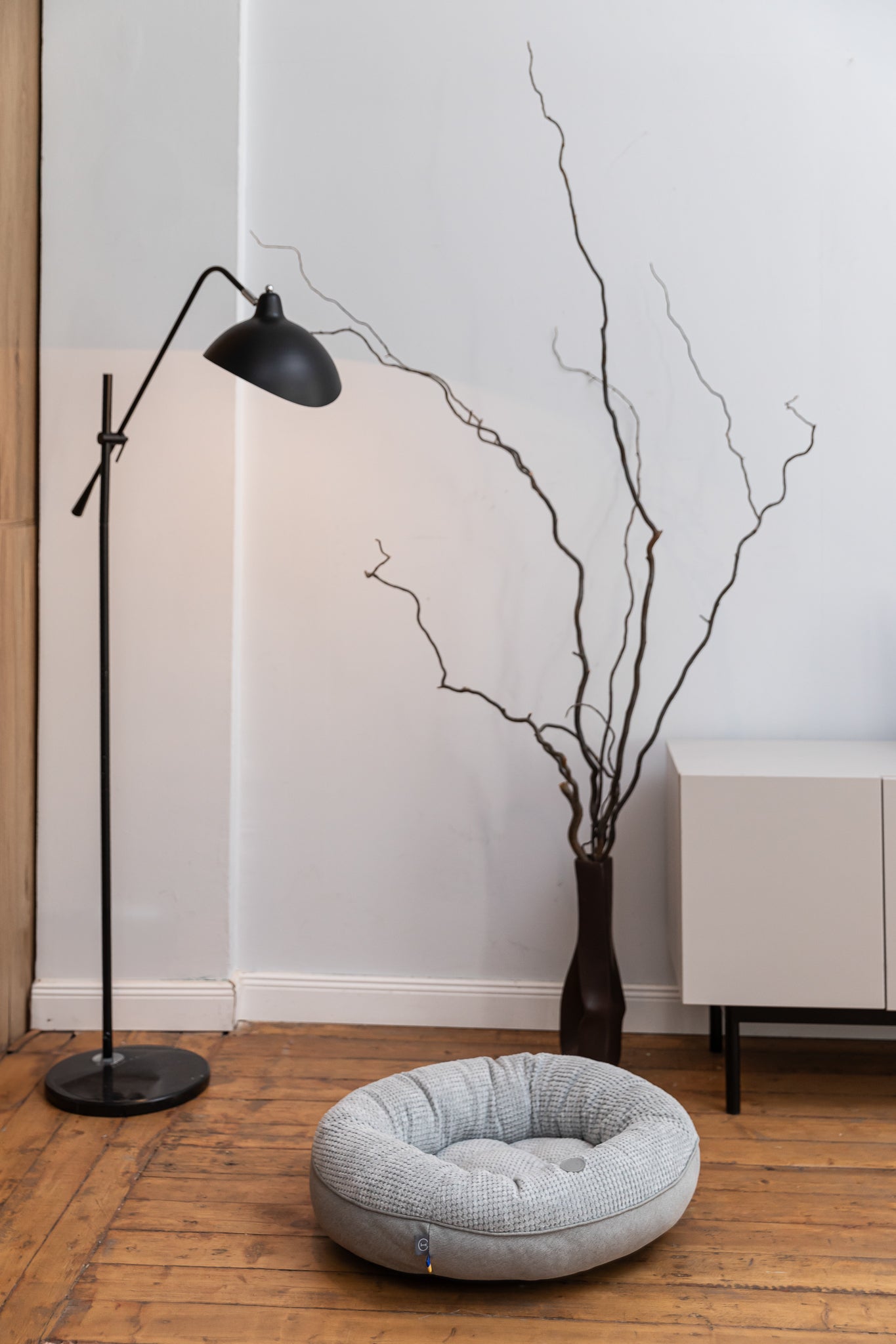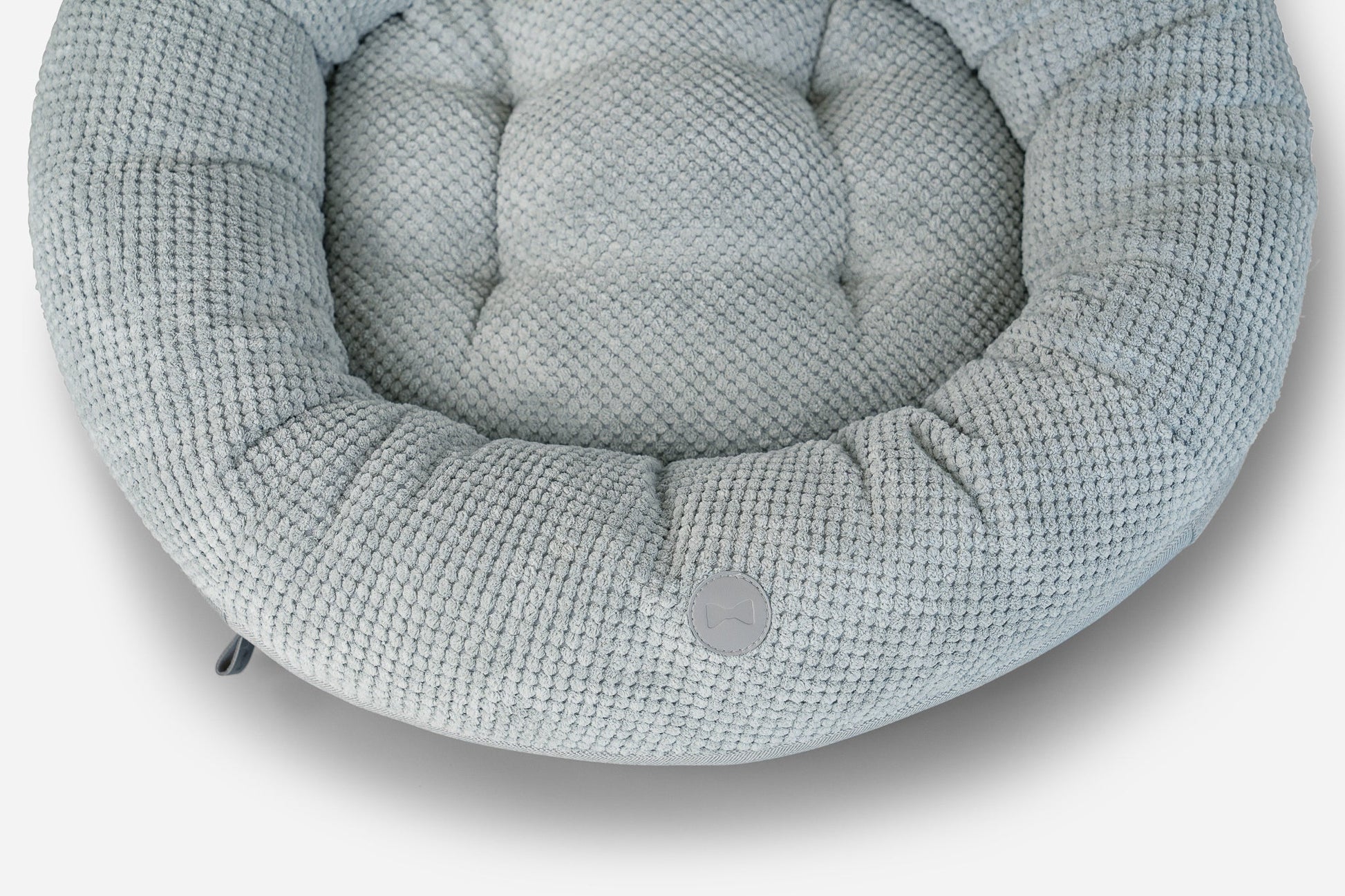 Moonlight Gray Donut Dog Bed features ultra-soft, hypoallergenic faux fur and lightweight holofiber for cloud-like comfort and lasting shape. Designed with plush outer bolsters to give your dog a feeling of safety and warmth. The removable, washable cover with hidden YKK zippers is made by a certified manufacturer (ISO 9001, OEKO-TEX®, GRS), ensuring quality and eco-friendliness.