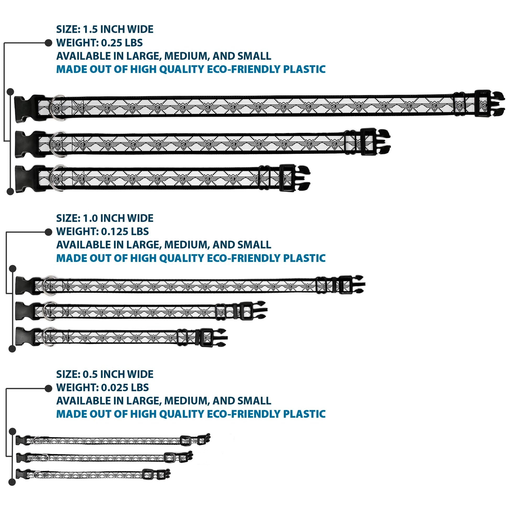 ๐ Dog Collar Plastic Clip BD Monogram White Black USA Made Adjustable ๐