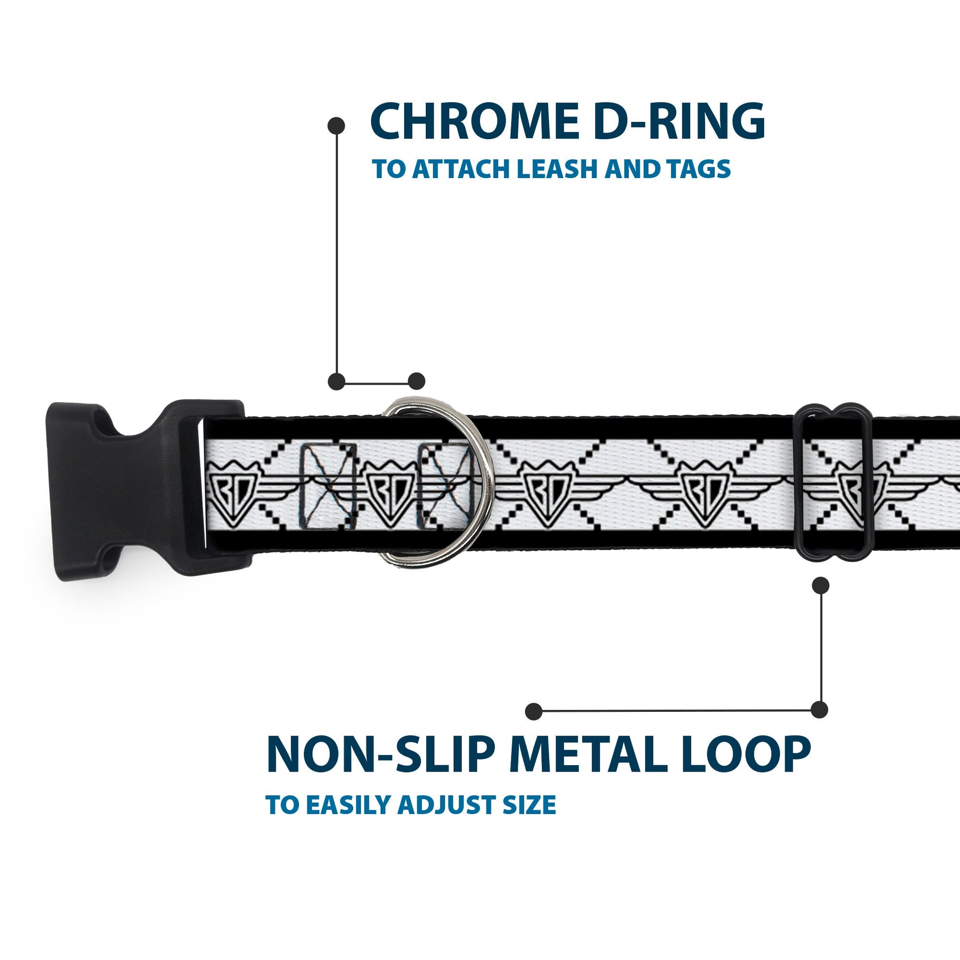 Dog Collar Plastic Clip BD Monogram White Black USA ๐