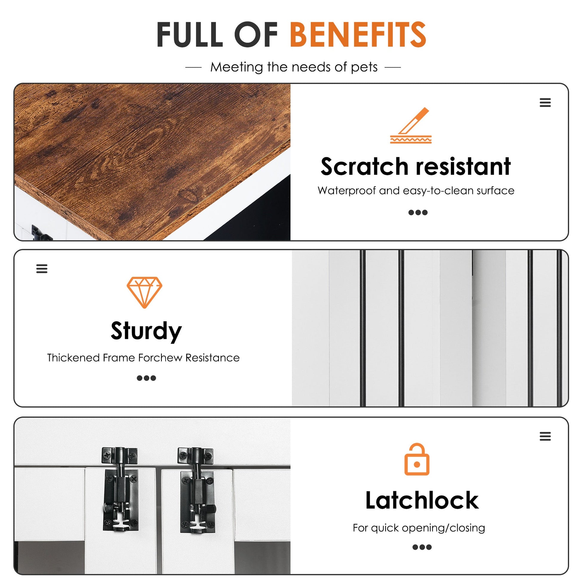 - Furniture style design: pastoral style dog cage; The use of high-quality P2 grade particleboard can not only better decorate your home space, but also more healthy and environmentally friendly.