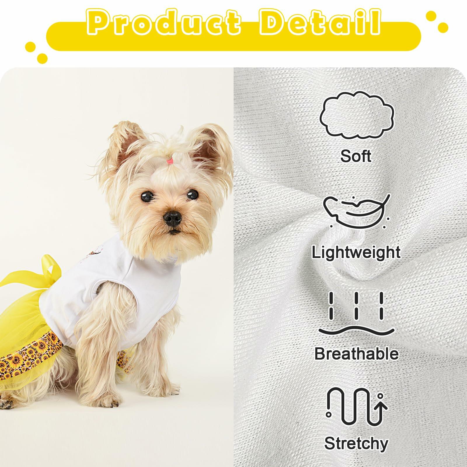 - 【Design】 Adorable pet dress with YELLOW tulle hem tutu and “sunflower ” print on back, round neck, sleeveless, which make your baby will be a charming princess.