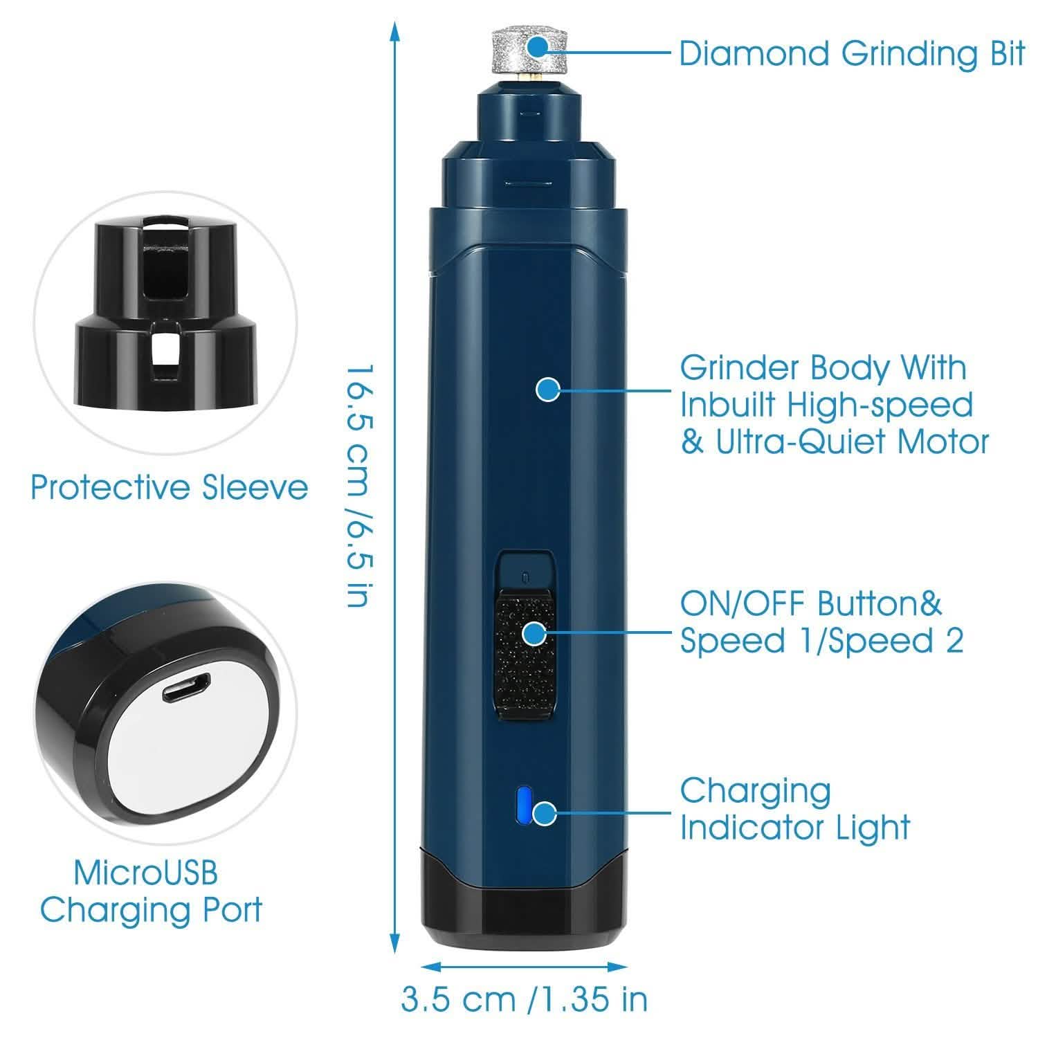 Dog Nail Grinder 2 Speeds Quiet USB Rechargeable