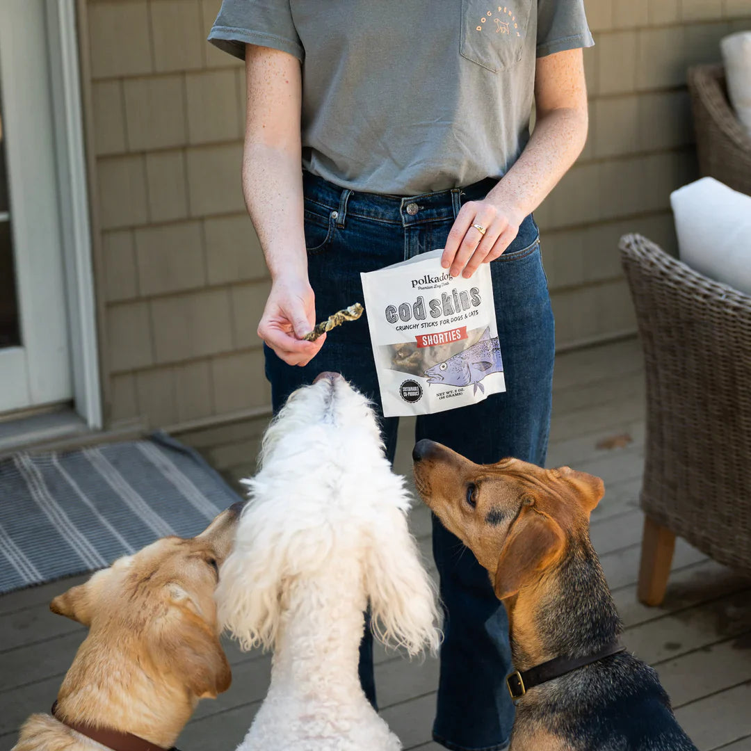Treat Your Dog To The Healthiest, Crunchiest Cod Skin Jerky Made Into Short-Stick Delicacies. Perfect For Dogs With Food Sensitivities, These Single Ingredient Treats Are High In Omega-3 Fatty Acids. Hand Rolled And Slowly Dehydrated In Boston, MA For Premium Quality Your Dog Will Love.