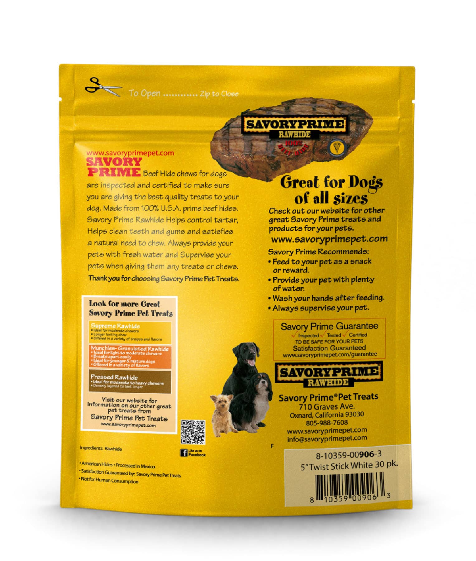 Dog Treats Rawhide - Savory Prime Twist Sticks 5in 30pk ๐ฆด