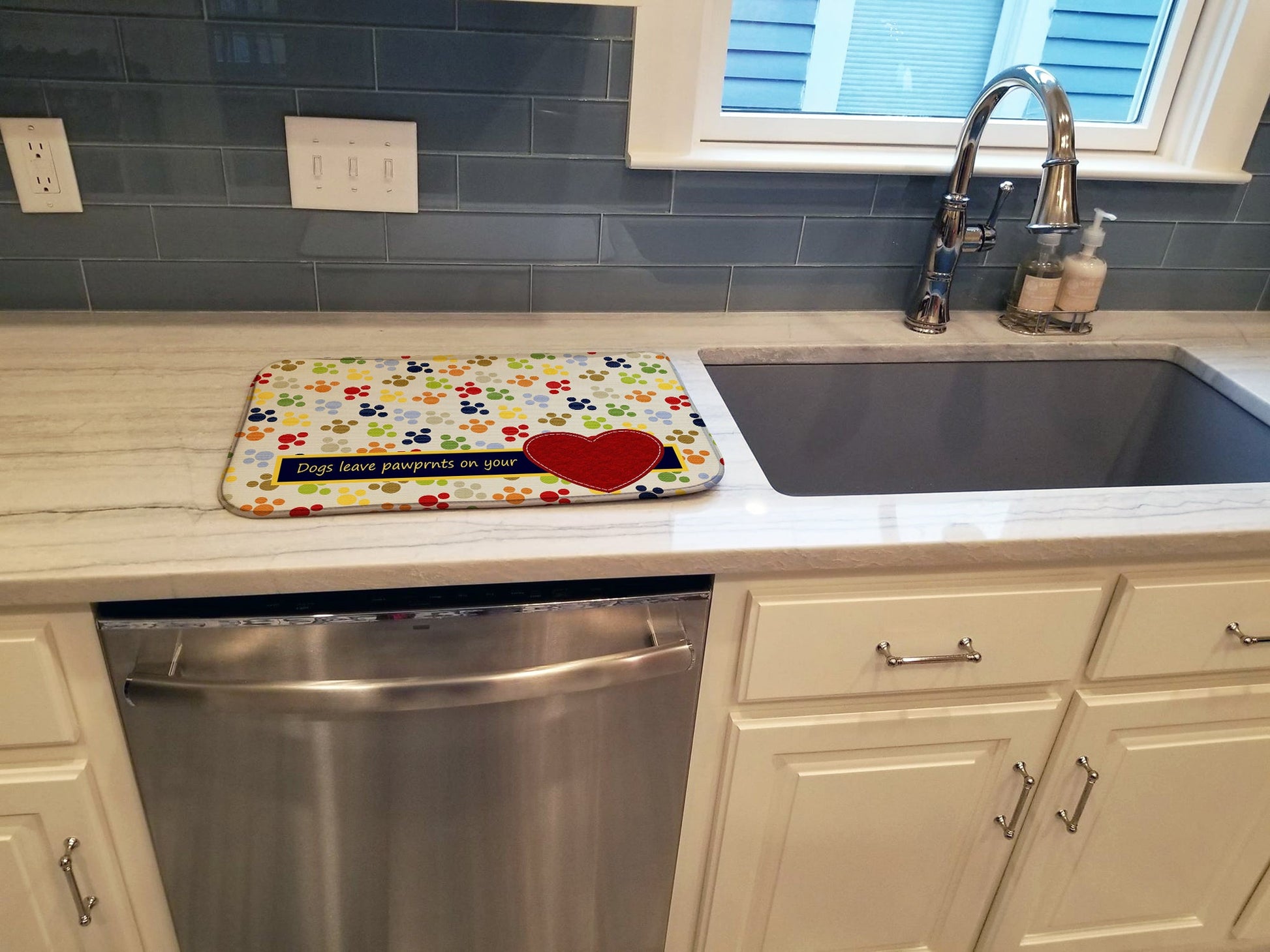 Dogs leave pawprints on your heart Dish Drying Mat – Absorbent, Artistic Kitchen Essentials SB3054DDM