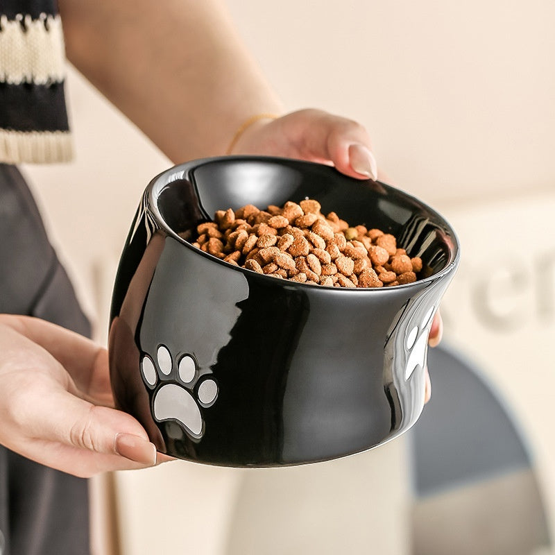 Drinking Water Neck Protection Pet Ceramic Oblique Mouth
