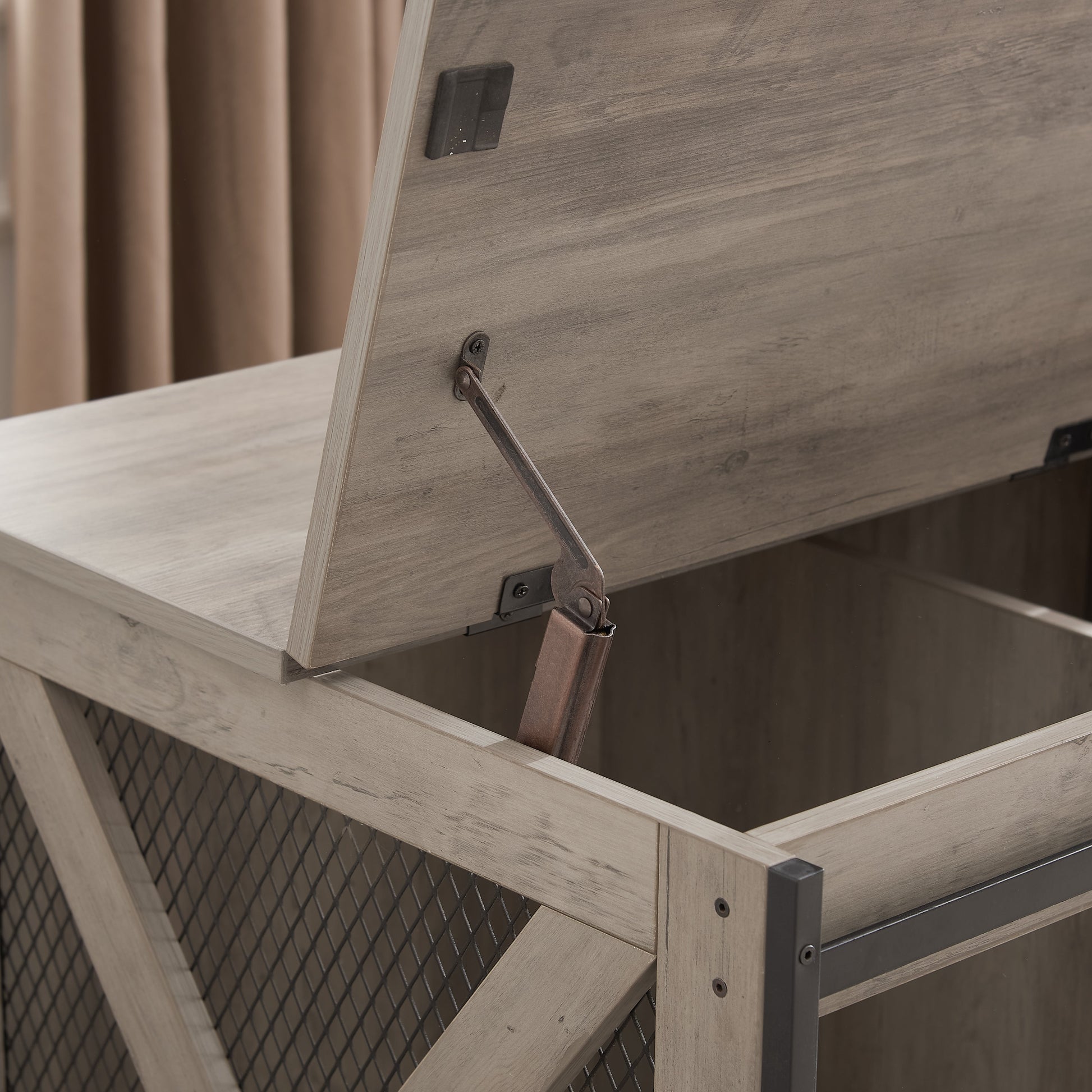 - Sturdy and Chew-Resistant: Constructed from durable particleboard and steel, this furniture dog kennel features metal enclosure bars designed to withstand a chewing puppy. It provides a lasting, stable, and safe retreat for your furry friend.