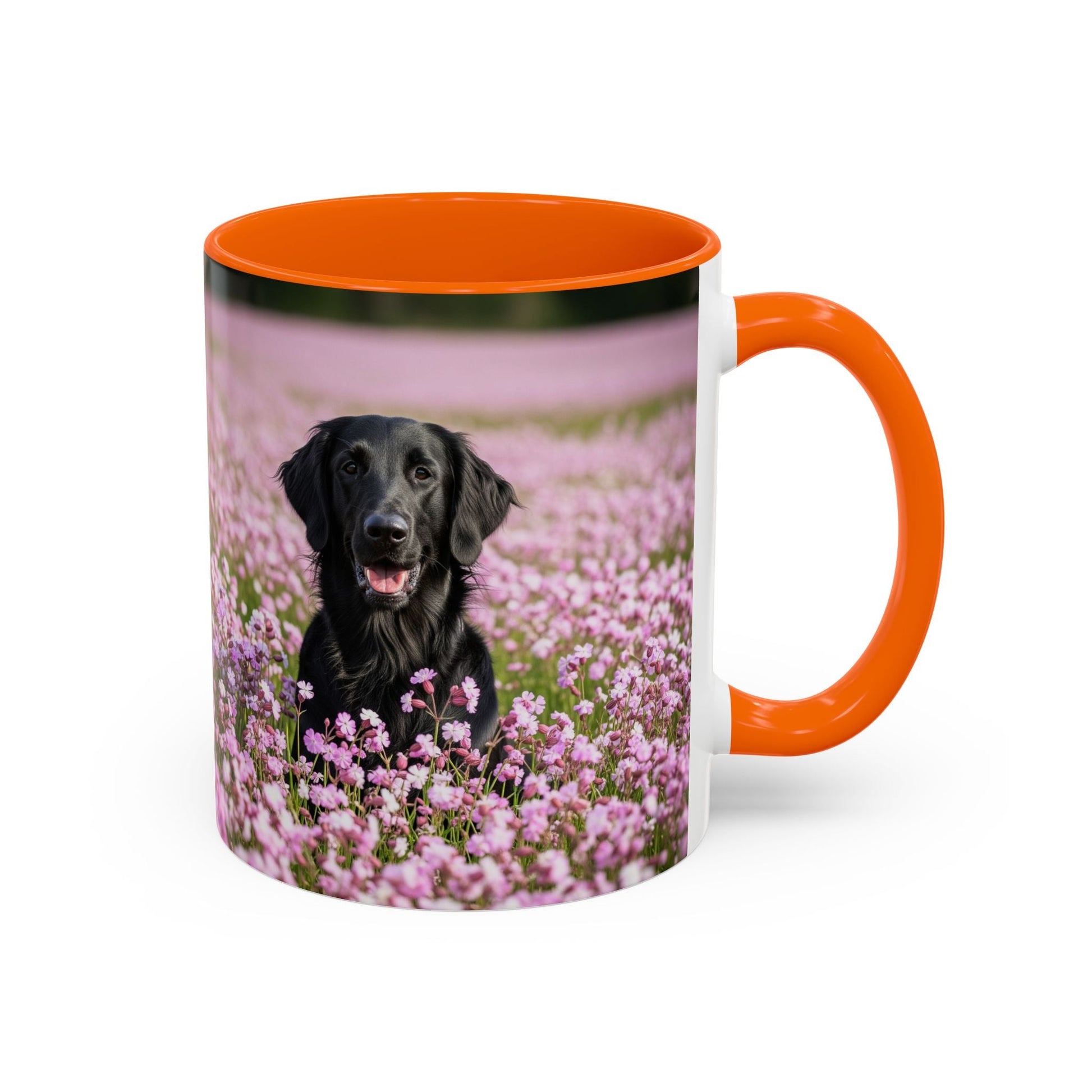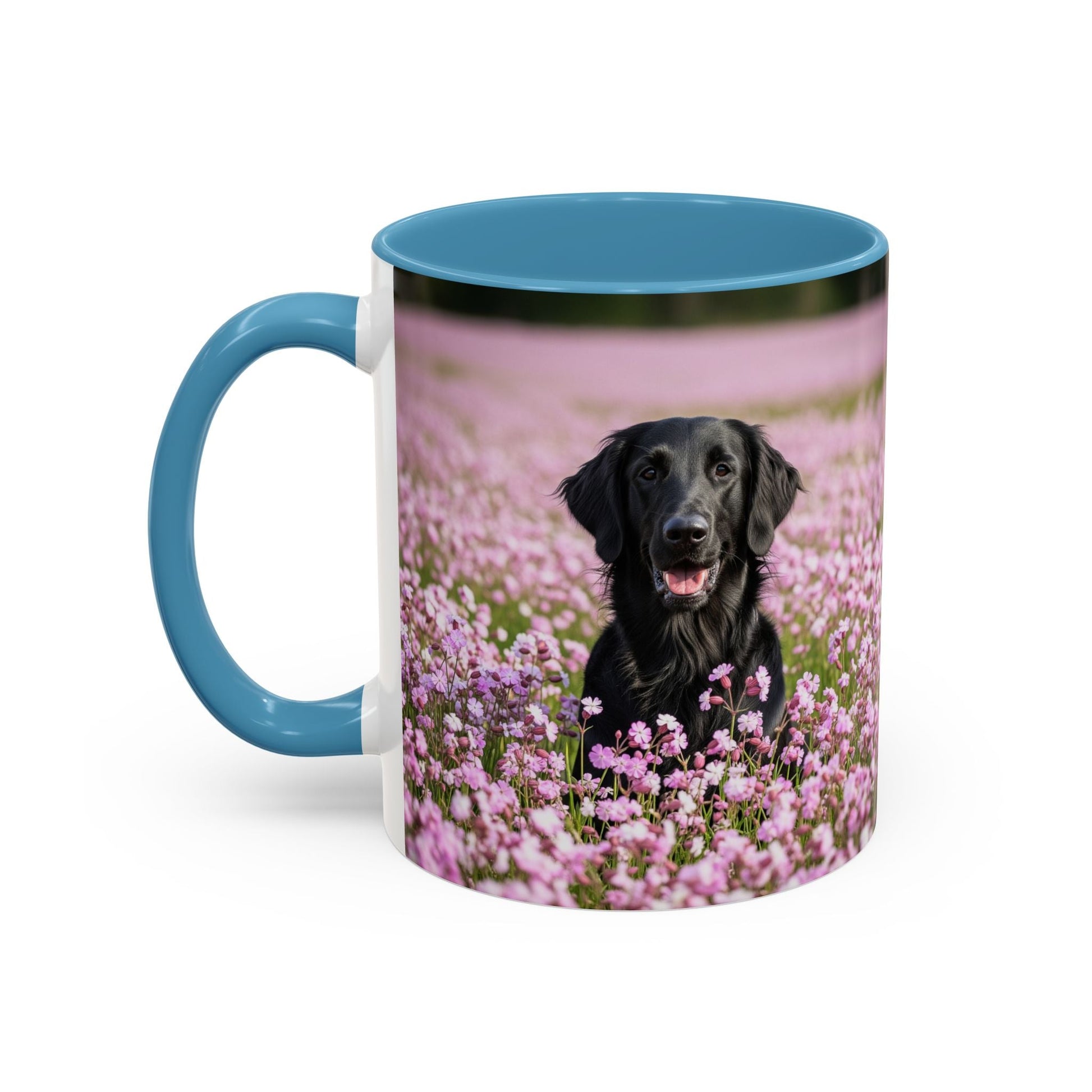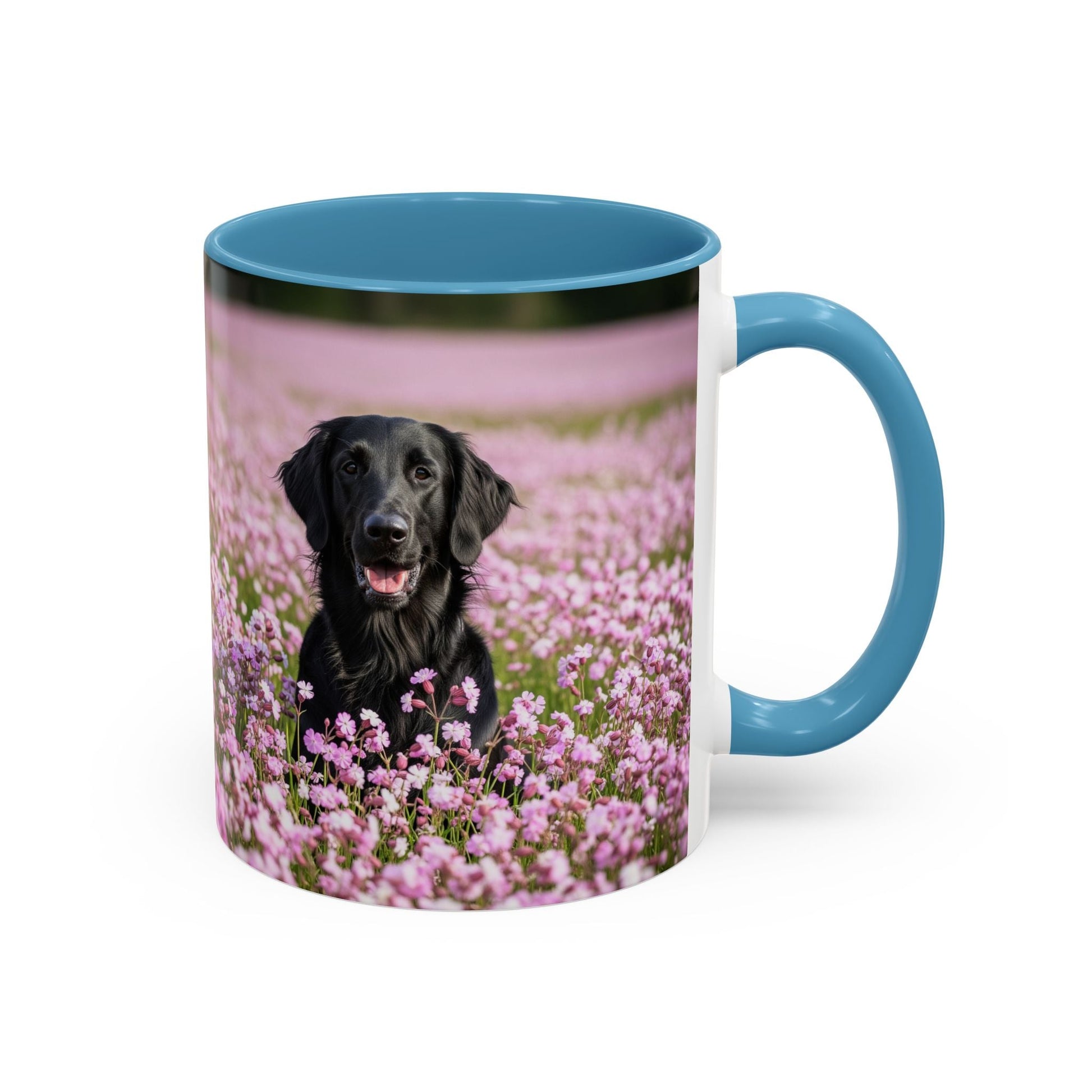 Flat Coated Retriever Accent Coffee Mug - Perfect Gift for Dog Lovers. This vibrant mug is microwave and dishwasher safe, with a glossy finish and eye-catching color contrast. Ideal for dog lovers, this mug is perfect for enjoying a cozy cup of coffee or tea during the holidays.