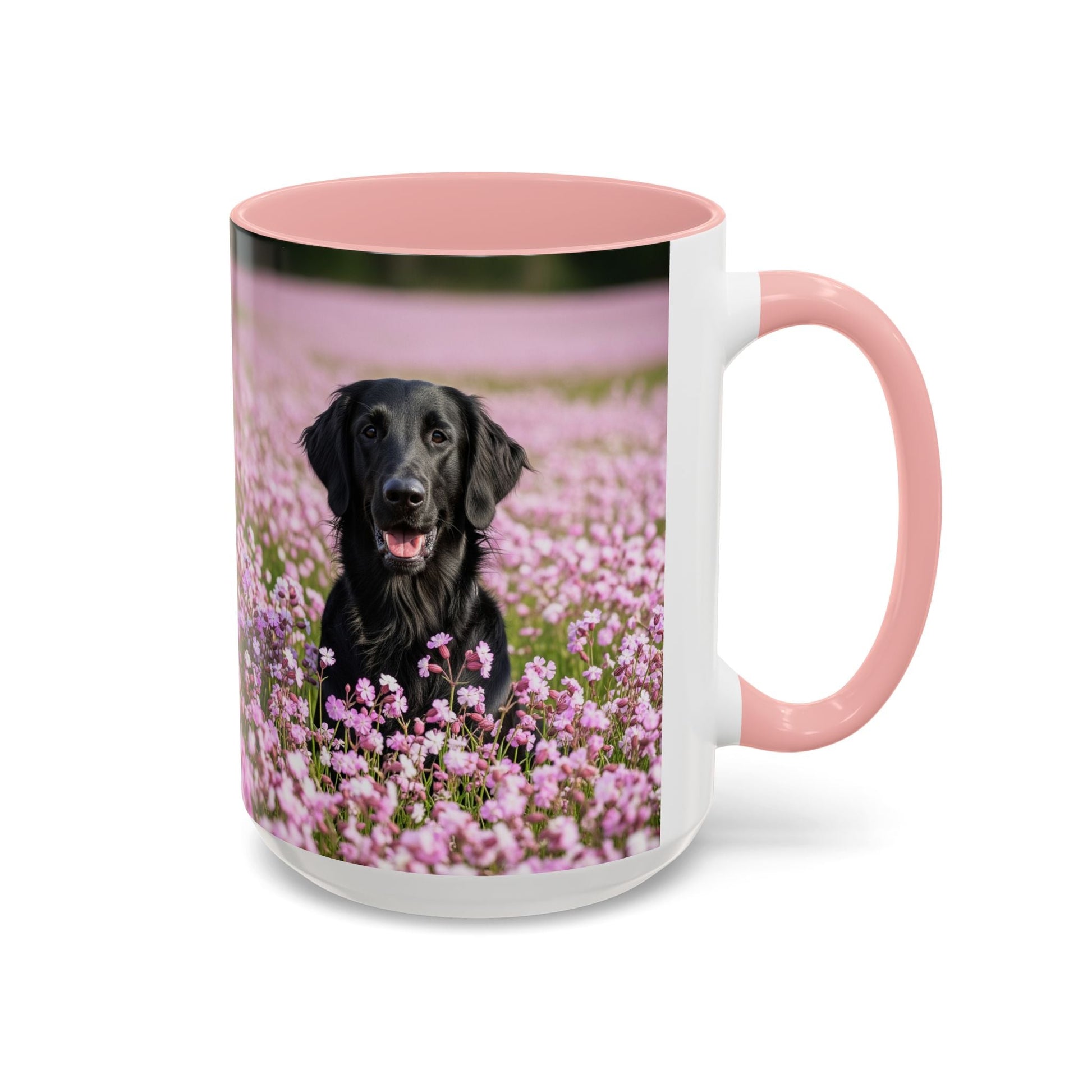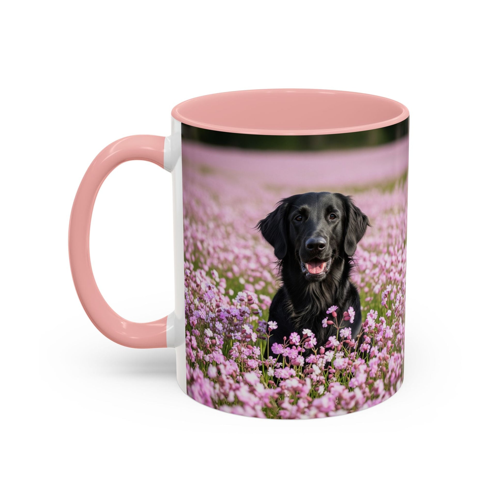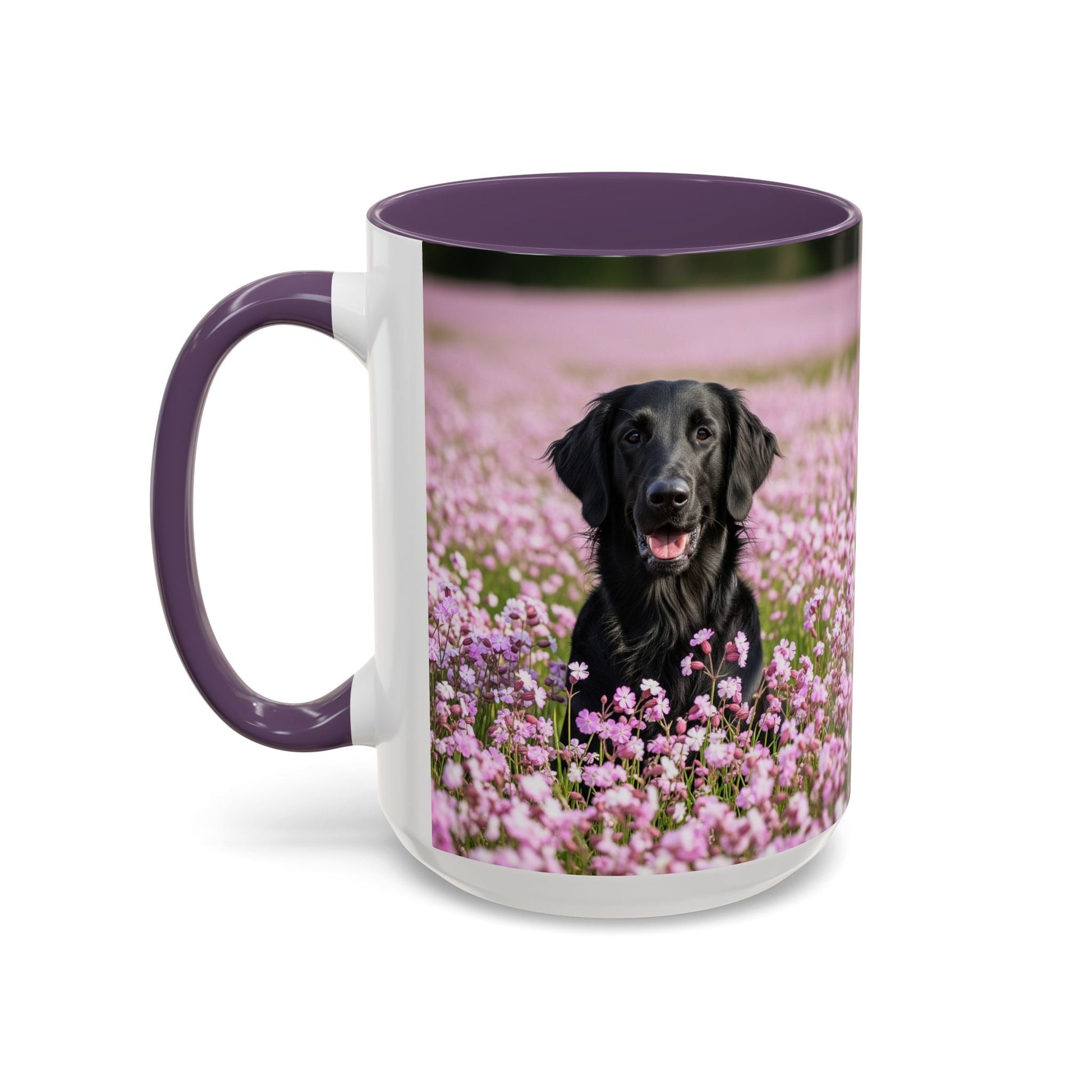 Flat Coated Retriever Accent Coffee Mug - Perfect Gift for Dog Lovers. This vibrant mug is microwave and dishwasher safe, with a glossy finish and eye-catching color contrast. Ideal for dog lovers, this mug is perfect for enjoying a cozy cup of coffee or tea during the holidays.
