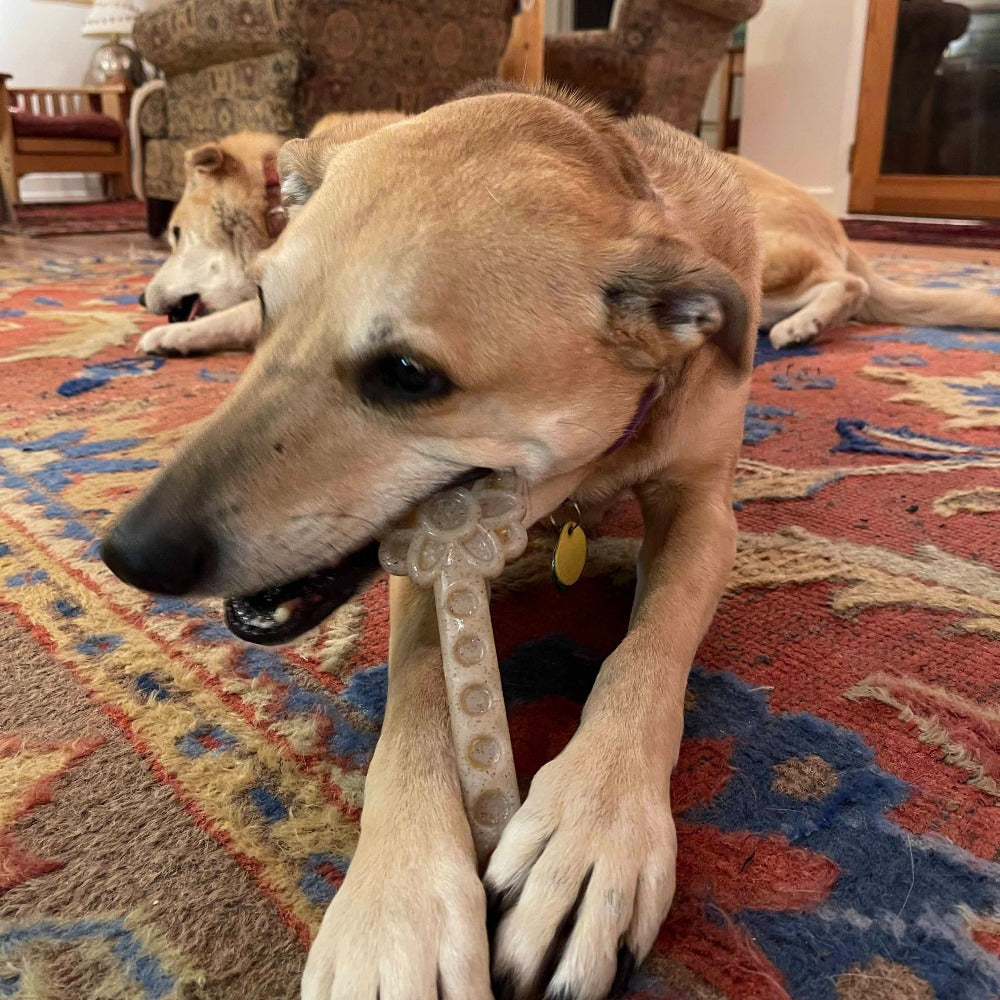 The SodaPup Flower Tower eChew Durable Nylon Chew and Enrichment Toy is the ultimate solution for the littlest power chewers who destroy ordinary toys in minutes. Crafted from an innovative ultra-durable nylon and wood composite material and proudly made in the USA, this unique flower-shaped enrichment toy combines playful design with industrial-strength durability that stands up to even the most determined super chewers.