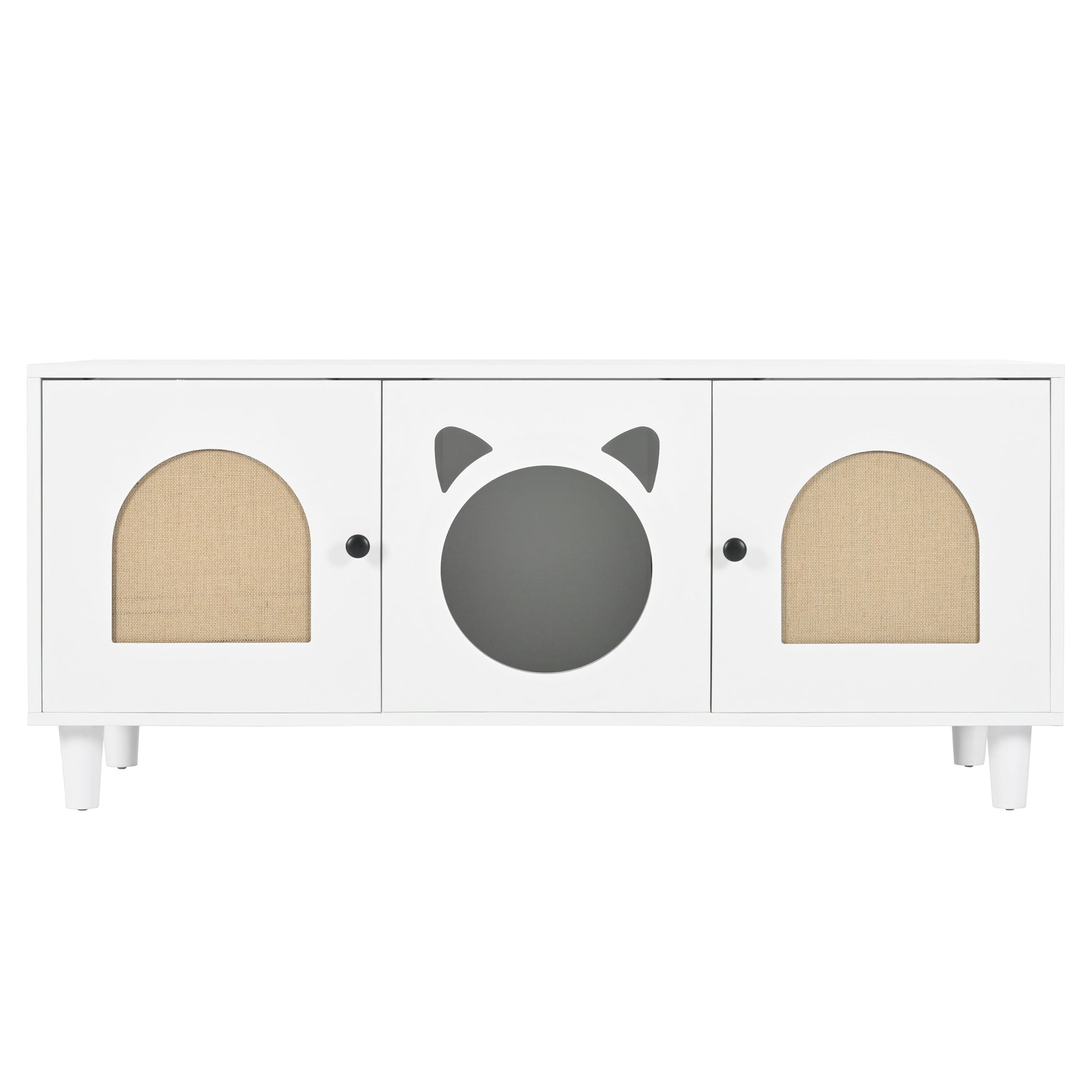 - Multi-functional use as a litter box enclosure, scratching station, and side table