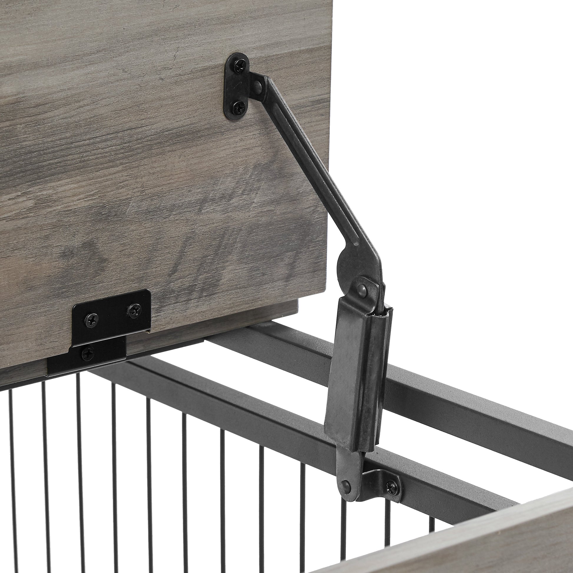 Furniture Style Dog Crate Side Table on Wheels with Double Doors and Lift Top.Grey,38.58''w x 25.5''d x 27.36''h