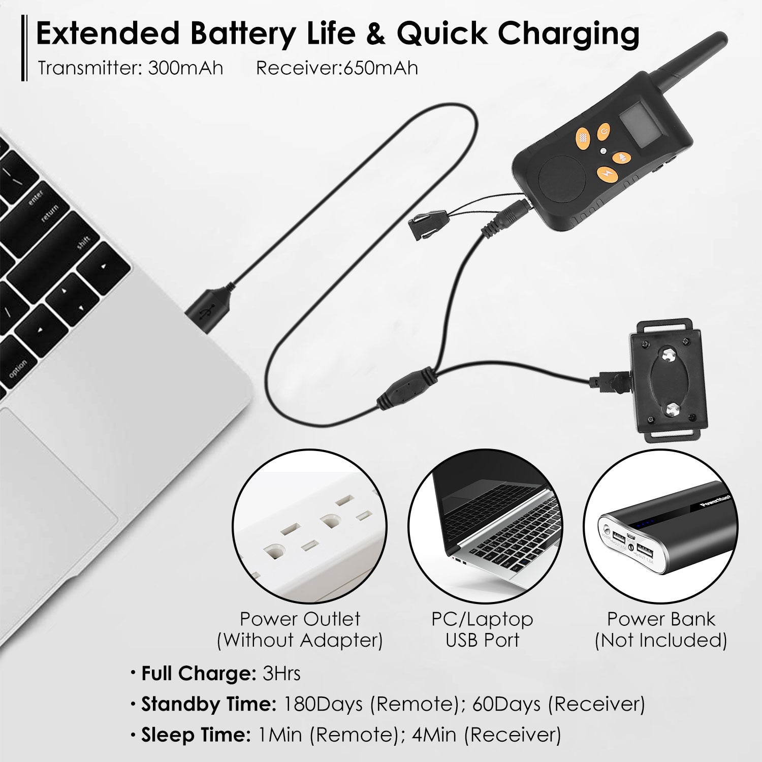 - Remote control range up to 1640 feet, allowing you to train your dog in various outdoor environments like your backyard, park, or beach.