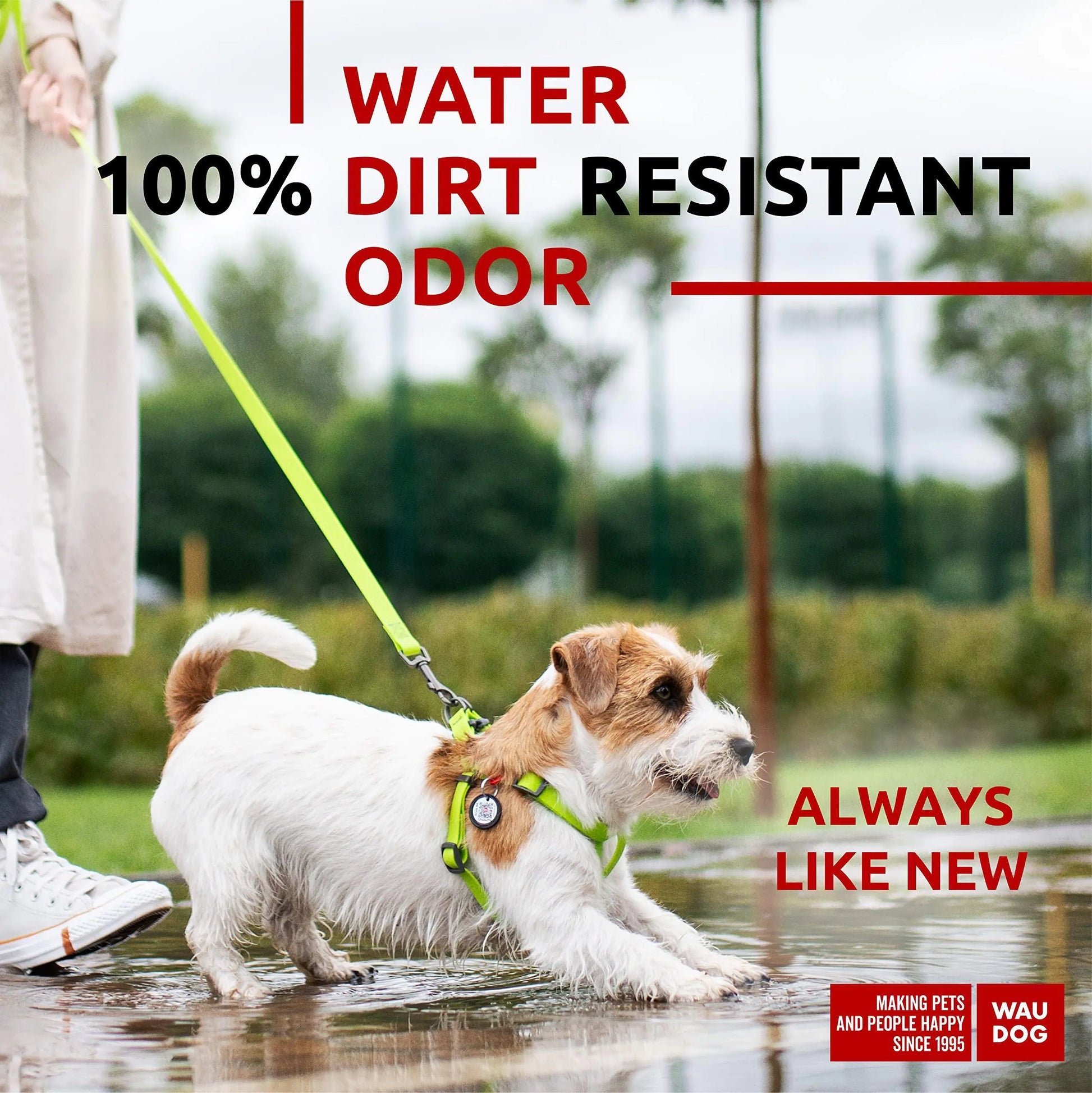 Innovative Material - The Waterproof dog harness is made of the innovative COLLARTEX material developed by the COLLAR company, which repels water and dirt. This material not easily soiled, can be simply washed under running water, and does not absorb dog odors.