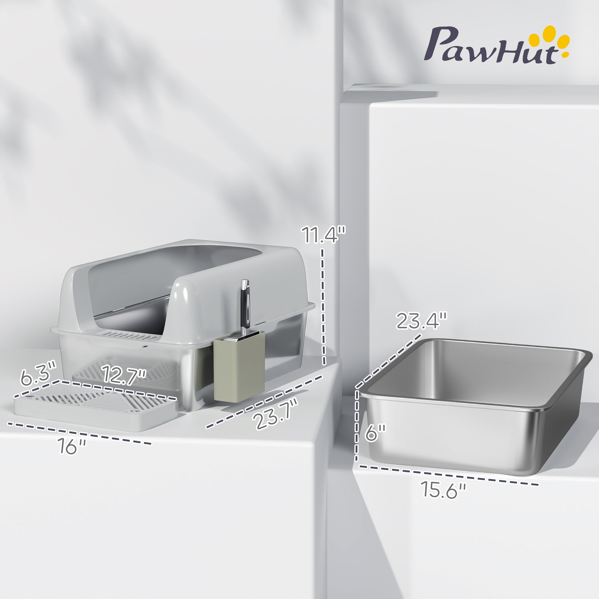 - - Convenient Accessories: Includes a stainless steel scoop and a handy scoop holder, ensuring you have all the tools you need for quick and efficient litter maintenance