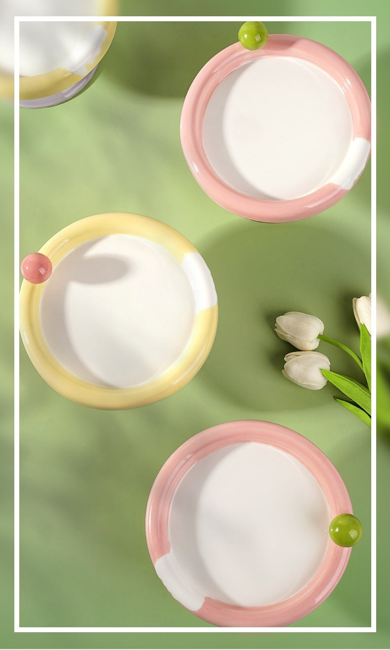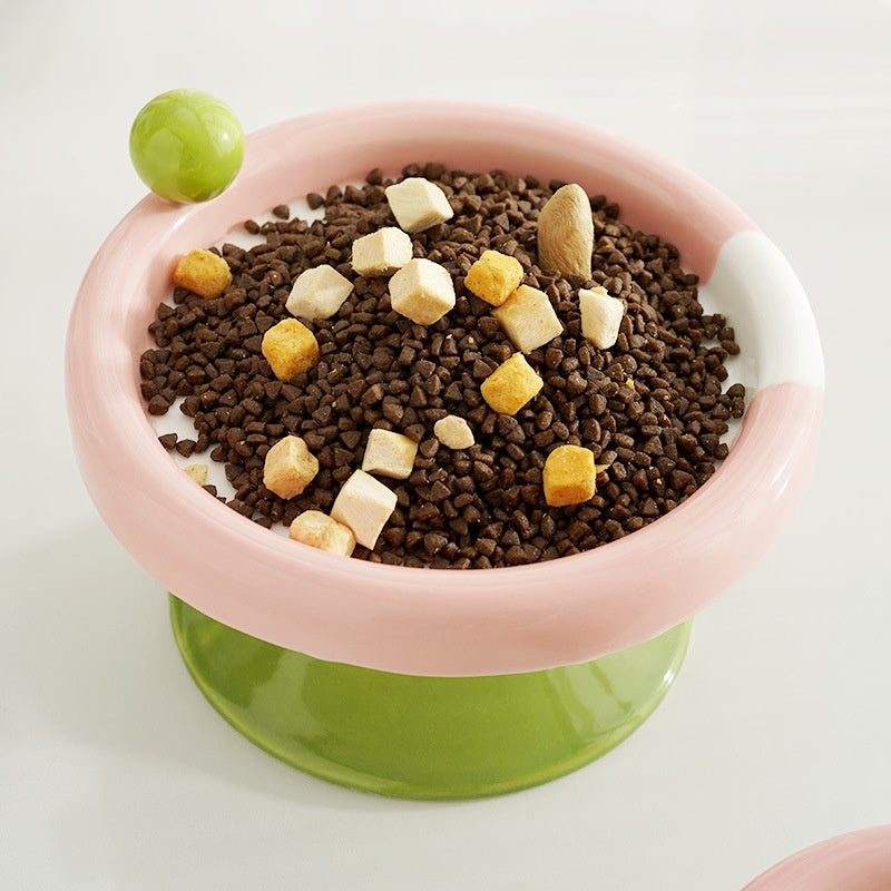 Oblique Mouth High Foot Candy Color Cat Bowl