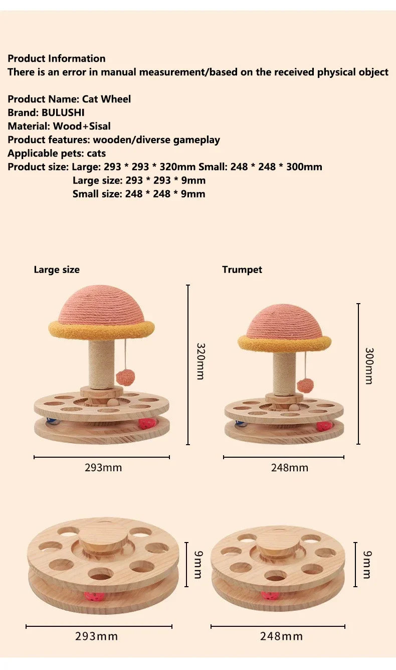Interactive Cat Scratching Board - Wood Carousel Puzzle & Claw Care Station