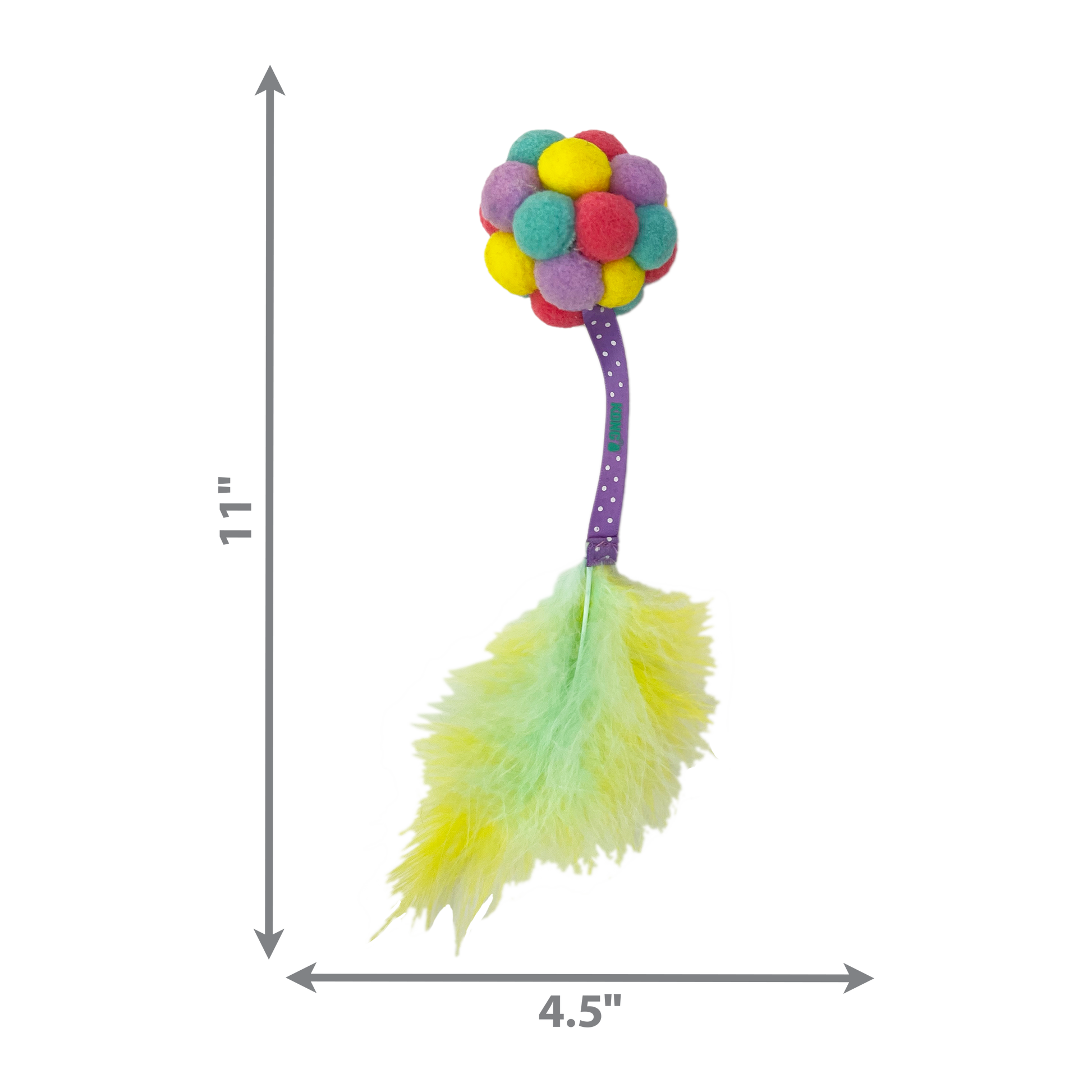 KONG Active Bubble Ball tempts cats into instinct-satisfying bat-and-chase fun with multi-sensory features propelled by an irresistibly rolling pompom ball. The fluttering feathered tail sparks hunting instincts while the tinkling bell within the pompoms keeps play going.