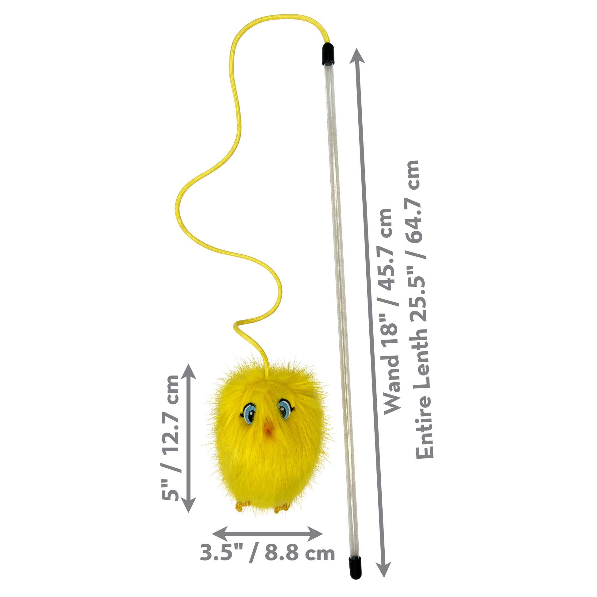 KONG Teaser Chirpz Chick is the perfect toy for interactive play with your cat! This little chick “chirps” when it is moved and batted, while inner crinkle material, dangly legs, and KONG Premium North American Catnip further entice rounds of energetic play. Fling, drag, and bounce this Teaser while your cat swats, bats, and bites at the birdie at the end. Irresistible plush fur invites capturing and wrestling during your sessions of shared fun. This is a great toy to add exercise and bonding to your cat’s regular play routine.