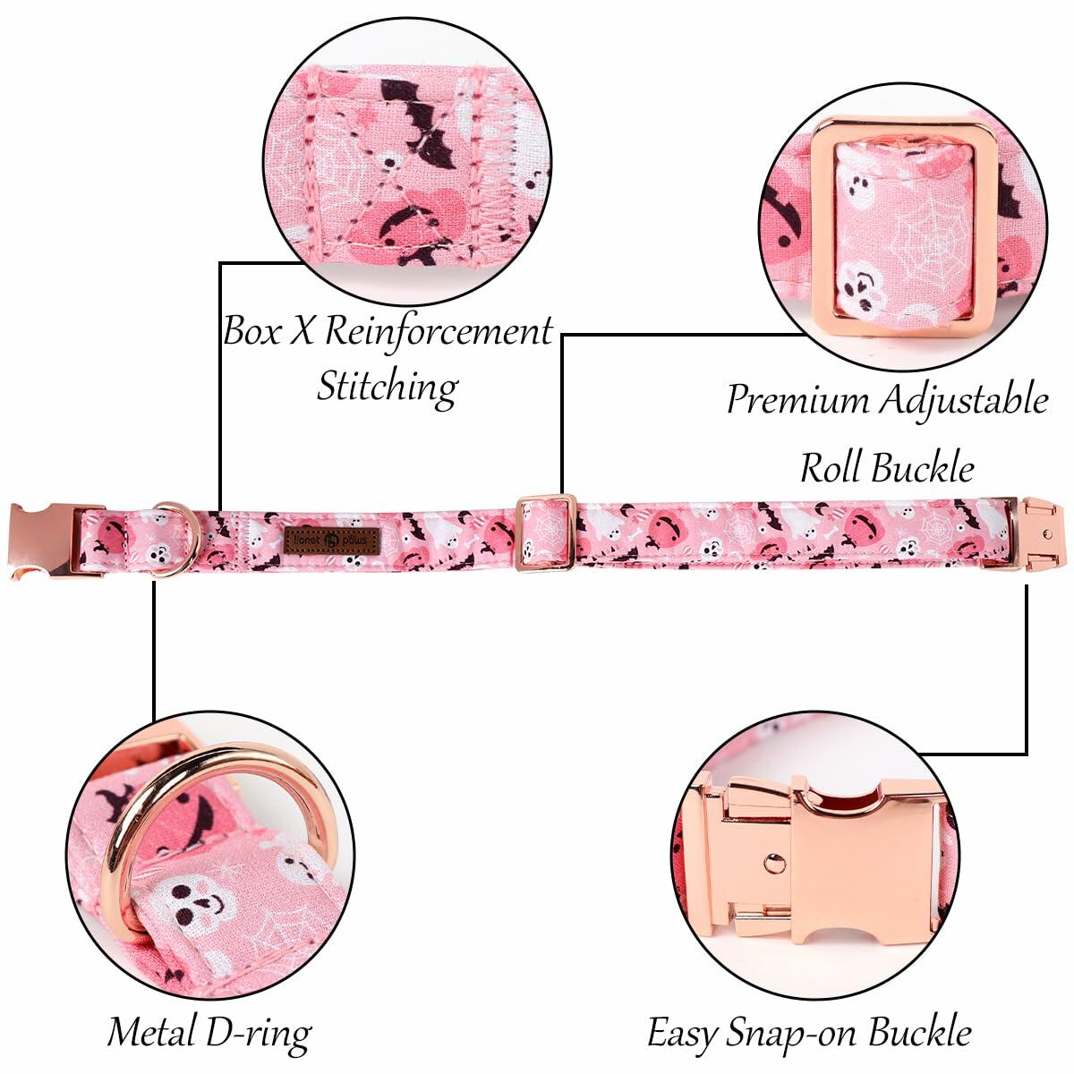 Lionet Paws Halloween Dog Collar Pink Cotton Adjustable Small