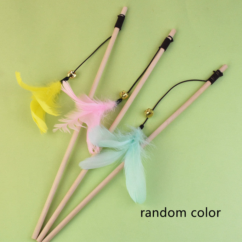Log Wooden Pole Vine Bal Bell Feather Cat Teaser Stick