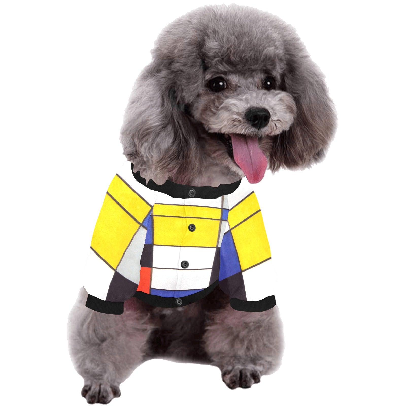 Make a bold statement with the Mondrian Composition A Round Neck Shirt for your pet. This stylish shirt, made from 100% polyester, features the striking abstract design of Piet Mondrian's Composition A. With its soft fabric and well-stitched seams, it offers both comfort and durability. Hand and machine washable, this shirt is as practical as it is fashionable.