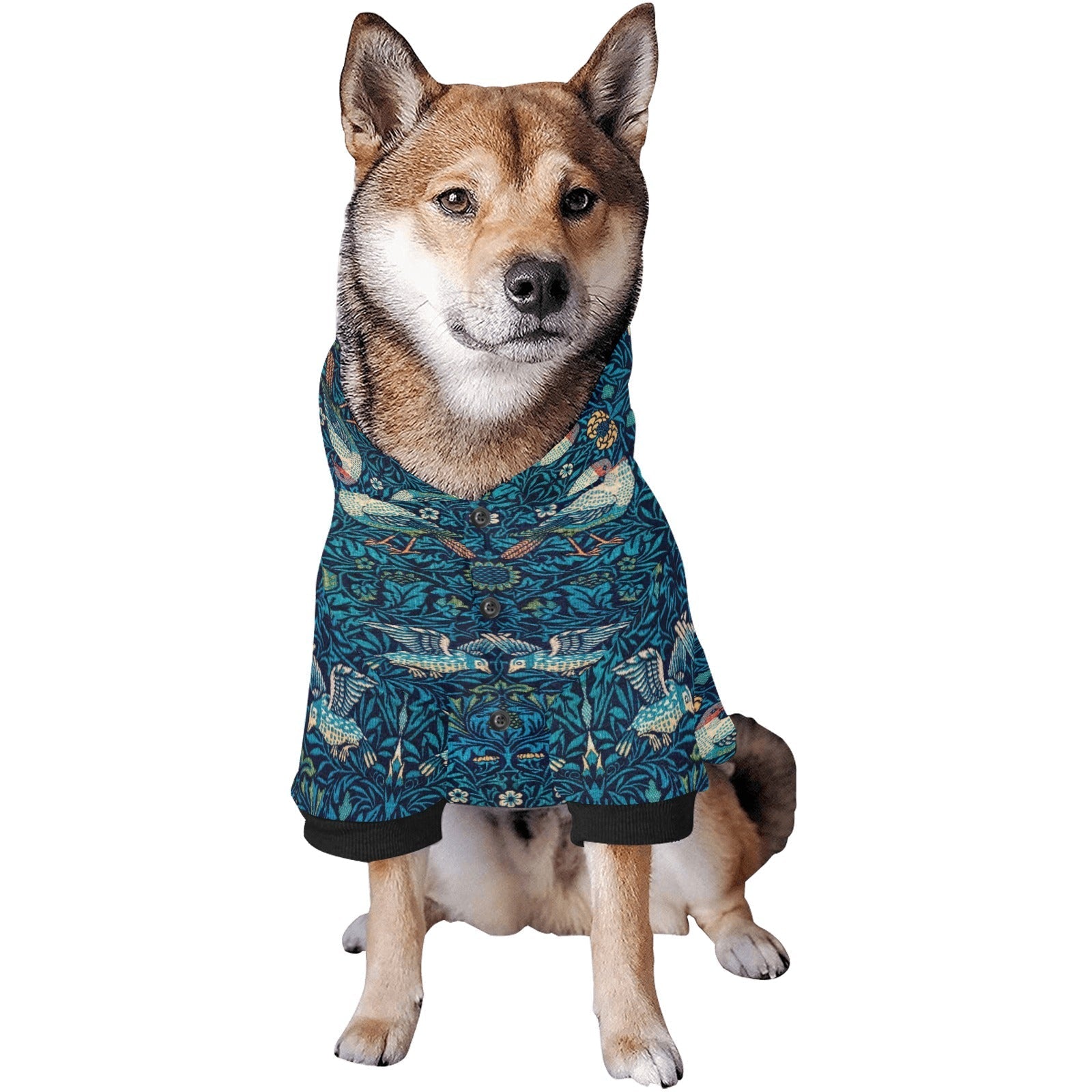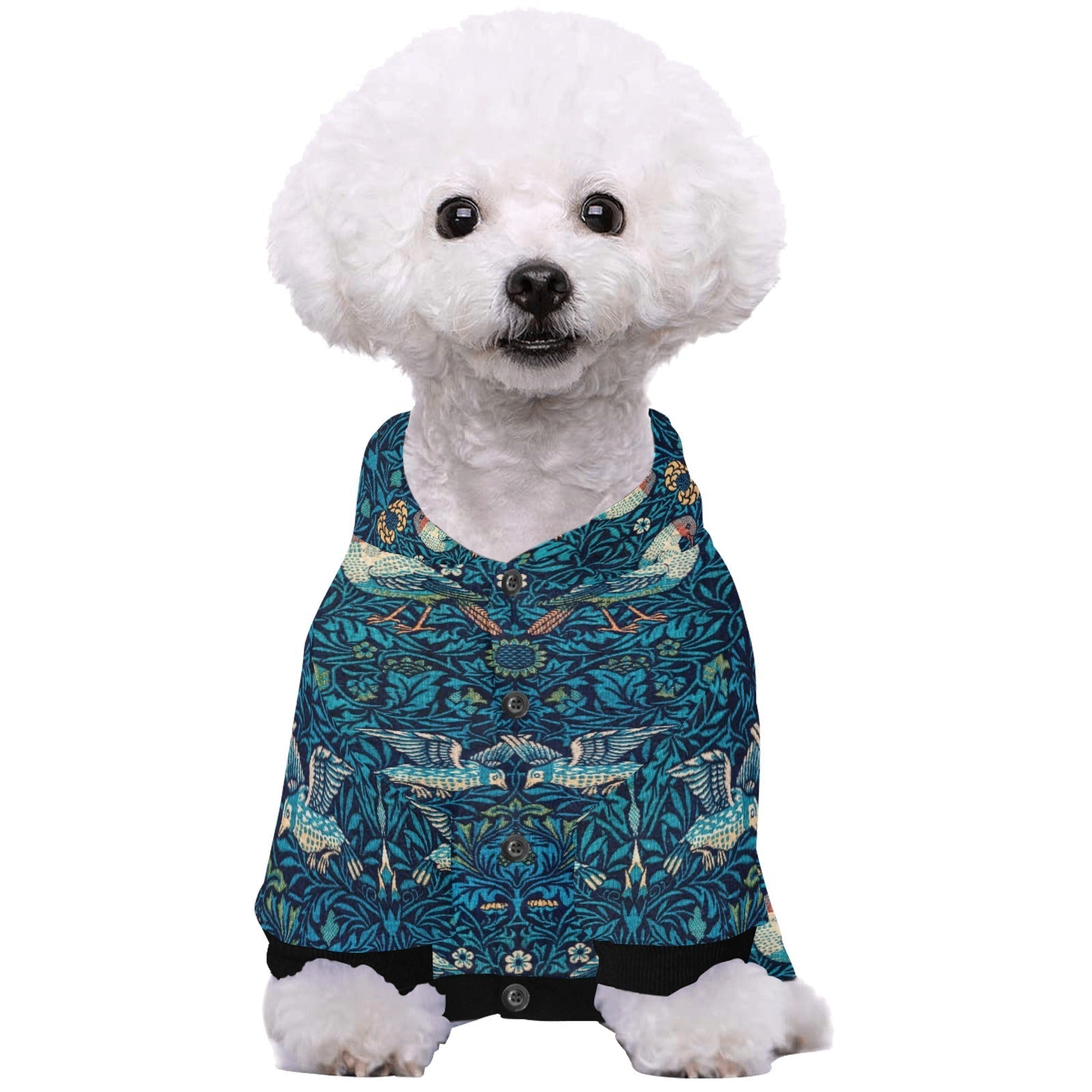 Keep your dog cozy and stylish with the Morris Bird Button Hoodie. Crafted from premium polyester, this fashionable hoodie is soft and comfortable, making it perfect for any season. Featuring the intricate wallpaper design from William Morris's Bird, it adds a touch of elegance to your pet's wardrobe. The warm, button-up hoodie is easy to care for—it's hand and machine washable.