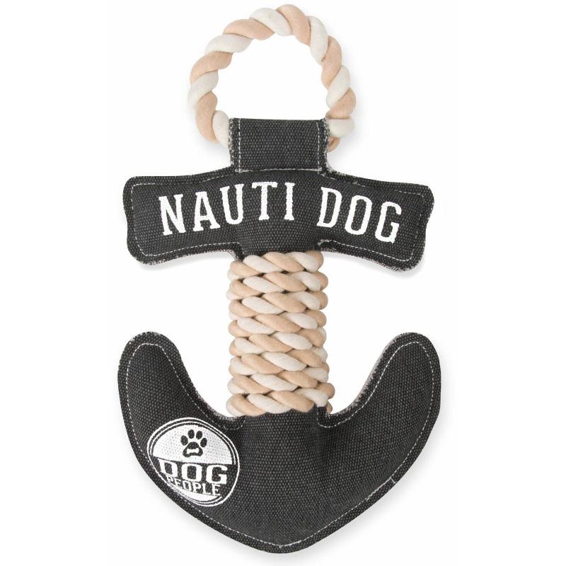 Anchor-shaped dog toy, packaged in a plastic polybag, is made from a high-quality cotton and polyester blend with an inner made from poly-fill and a squeaker. "Nauti Dog" text and Dog People logo are both printed on the front of the toy, whereas the We Pets tag is sewn-in on the back. Great for a dog who is a little naughty but loves the water.