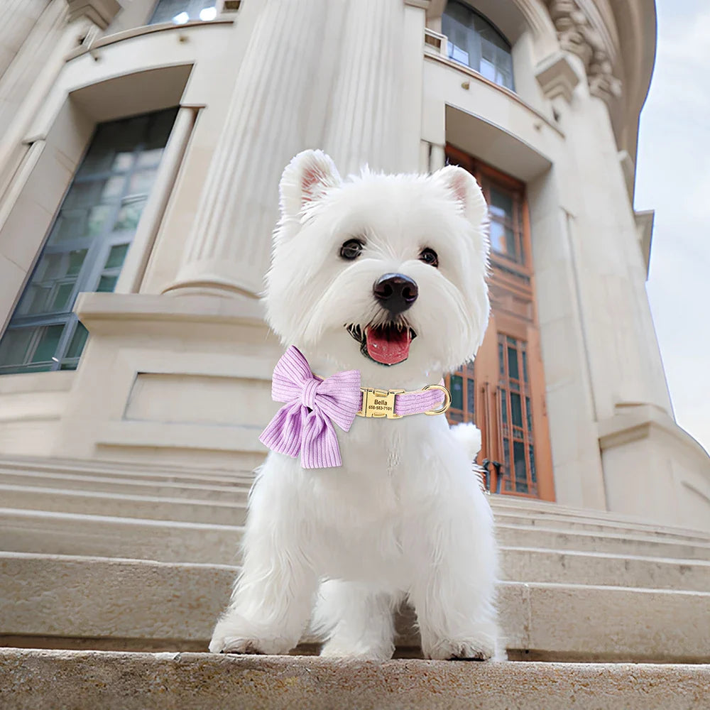 Personalized Dog Collar with Bow - Custom Engraved Cuteness